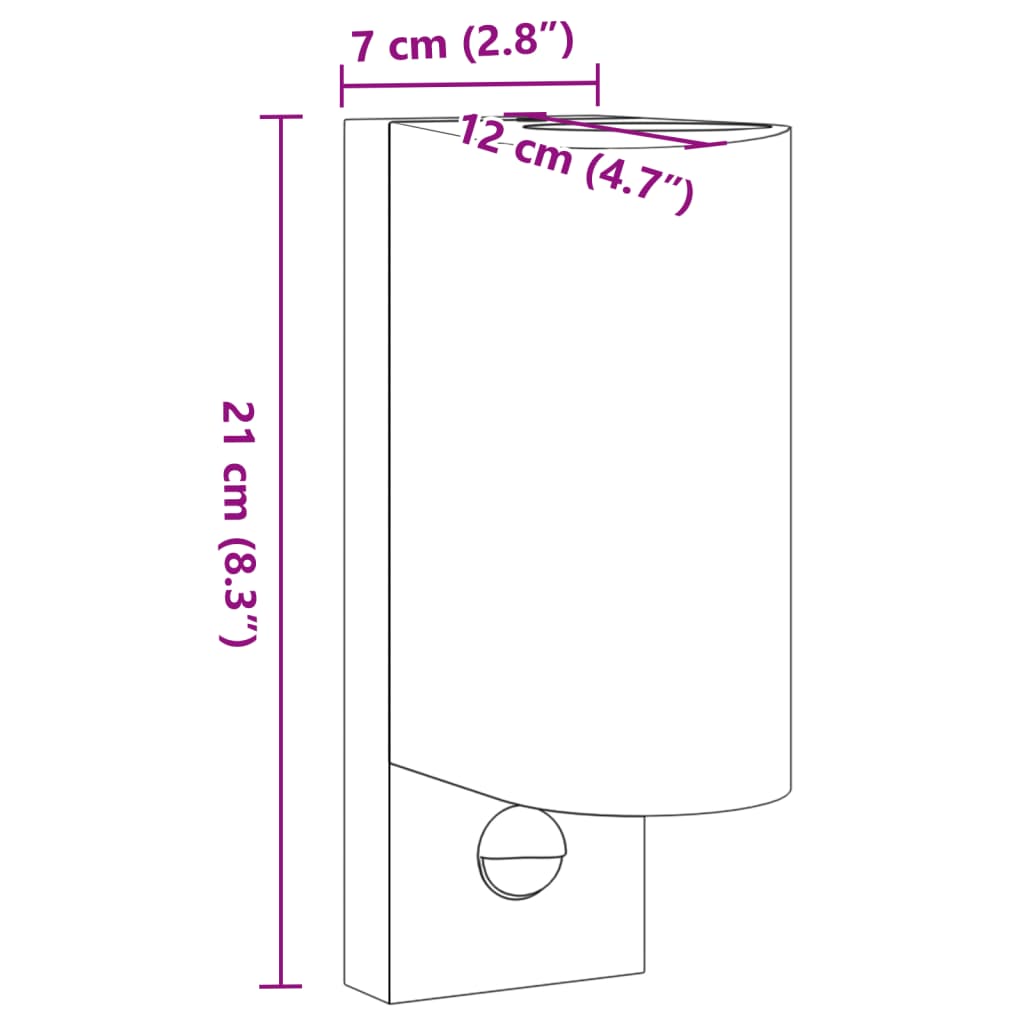 Candeeiros parede p/ exterior c/ sensor 2 pcs alumínio preto