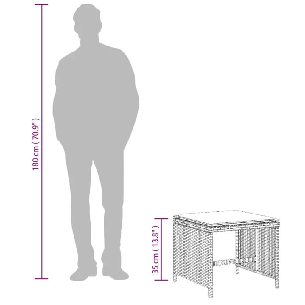 - Material durável: o vime PE, também conhecido como vime de poliéster, é um material sintético resistente e de baixa manutenção que se assemelha ao vime natural. É leve, fácil de limpar e geralmente utilizado em móveis de exterior devido à sua durabilidade e propriedades de resistência às intempéries.