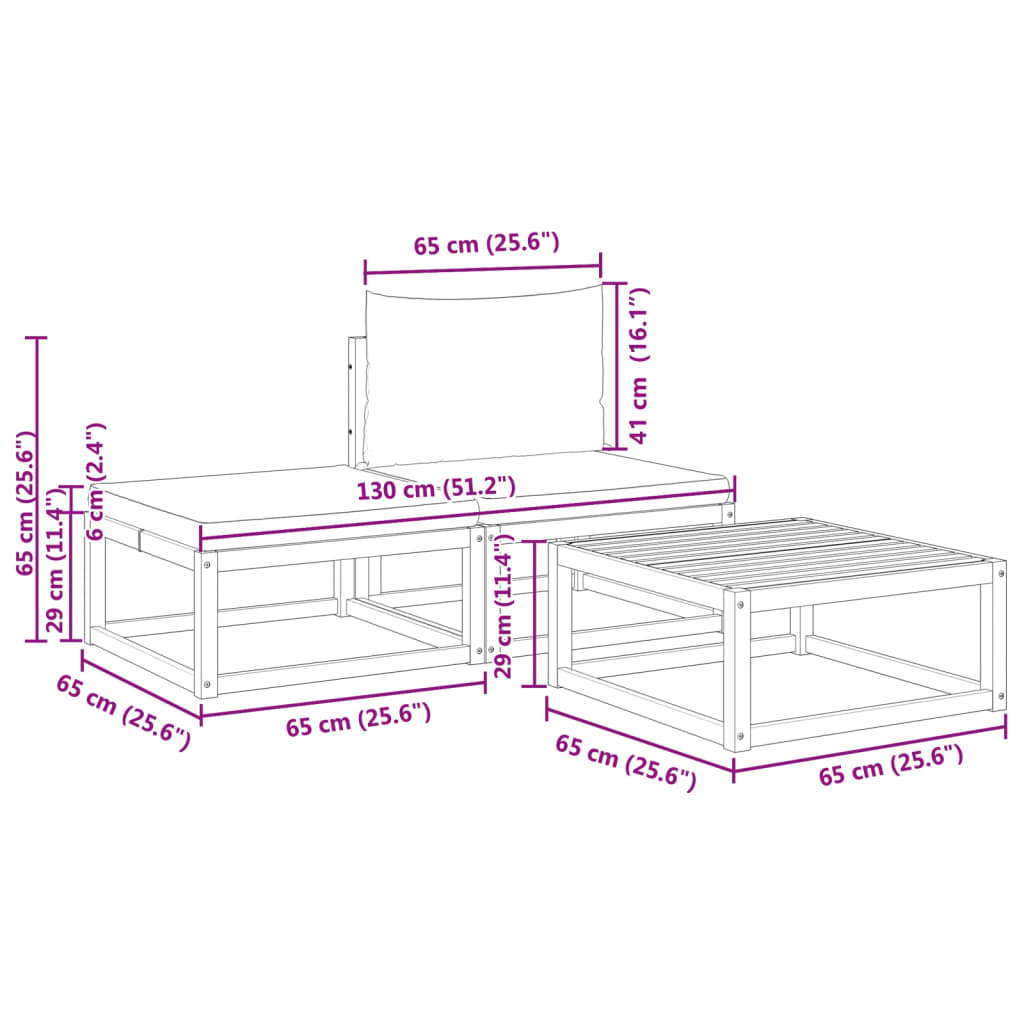 Conjunto de sofás de jardim de 3 peças com almofadas de madeira de acácia e corda