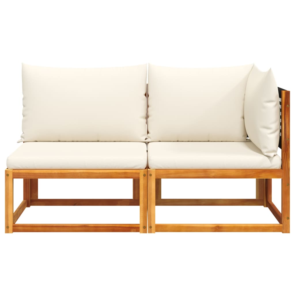 Sofá de jardim com almofadas, 2 lugares, madeira de acácia e vime