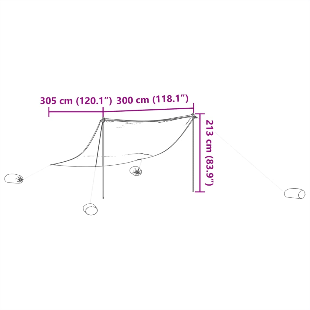 Toldo de praia com âncoras de areia 304x300 cm cinzento