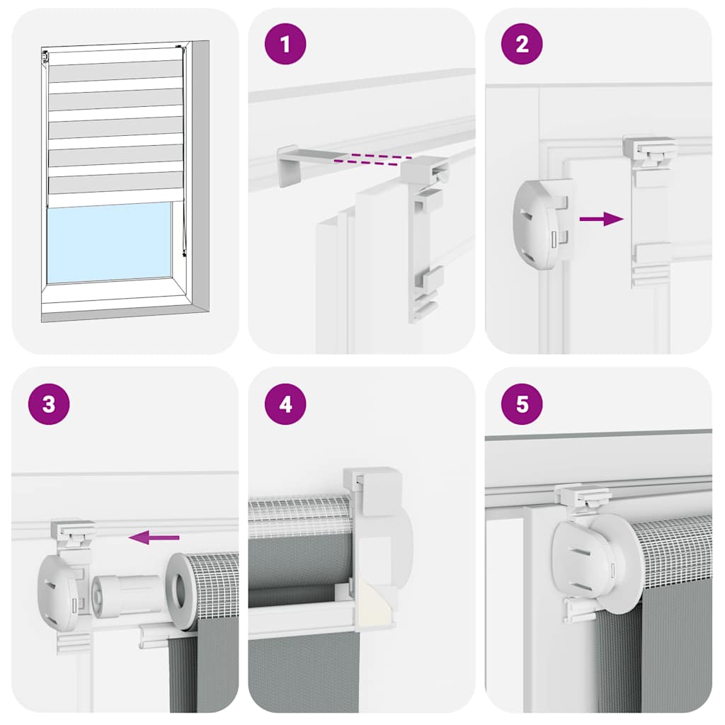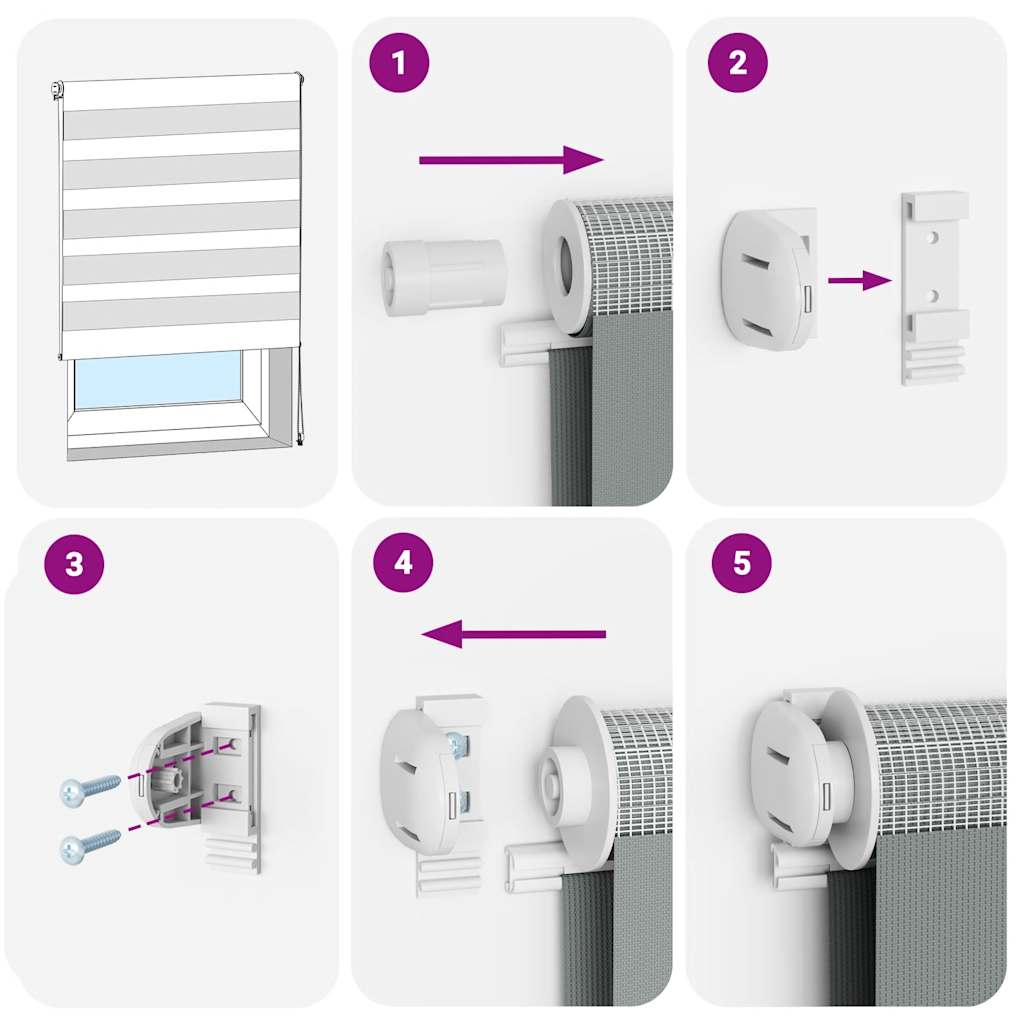 - Duas formas de montagem: Você pode fixar a persiana do rolo zebra à parede ou janela com parafusos ou sem perfuração usando suportes de fixação, dependendo de suas necessidades.