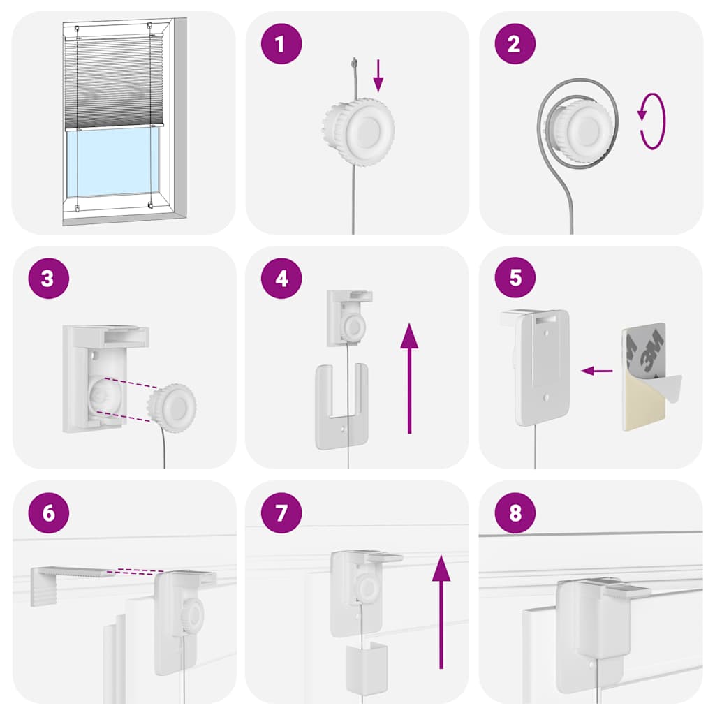 - Duas formas de montagem: Você pode fixar a persiana plissada na parede ou janela com parafusos ou sem perfurar usando suportes de fixação, dependendo de suas necessidades.