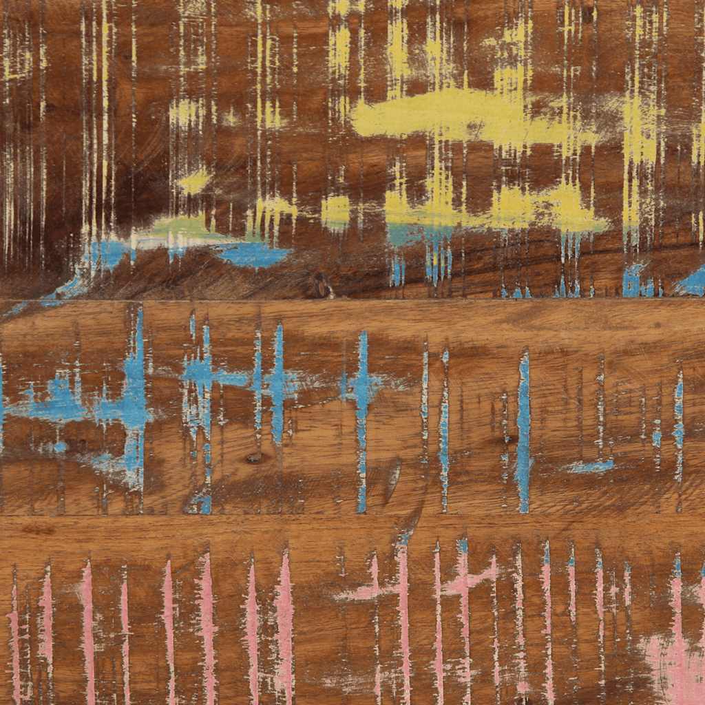 - Material: madeira recuperada maciça com um acabamento em múltiplas cores, ferro lacado