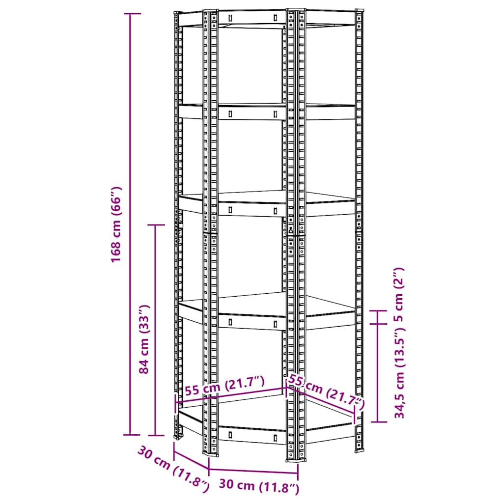 Estante de canto 5 prateleiras derivados de madeira e aço azul