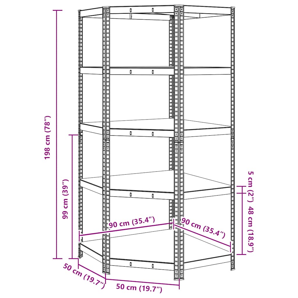 Estante de canto 5 prateleiras derivados de madeira e aço azul