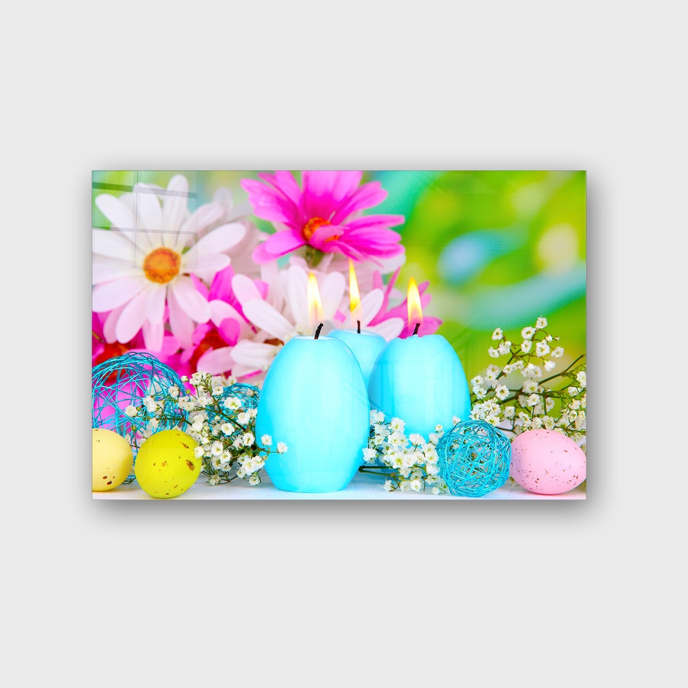 O vidro temperado não é apenas esteticamente superior - é também 5 vezes mais resistente que o vidro comum, fácil de limpar e mantém as cores vibrantes ao longo do tempo. A sua superfície lisa e brilhante reflete a luz de forma única, criando profundidade e dinamismo na sua decoração.