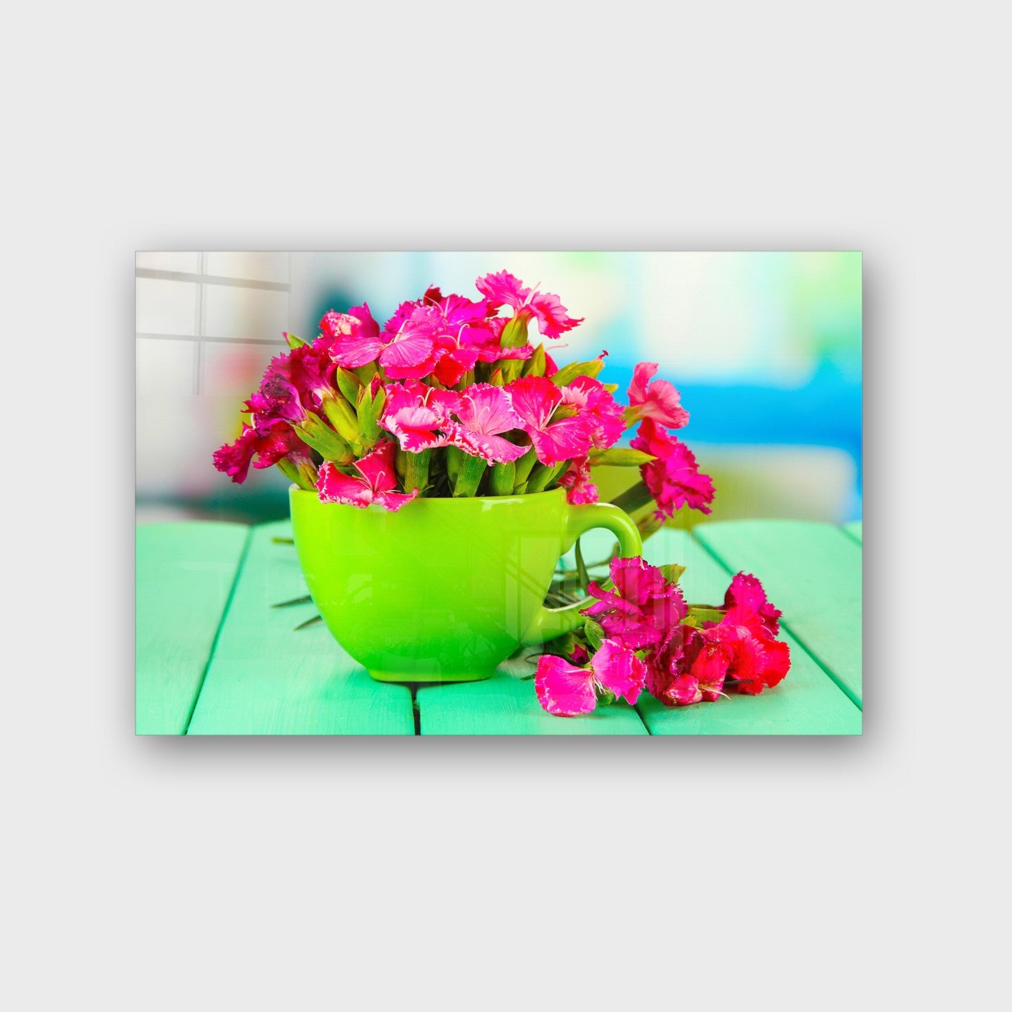 O vidro temperado não é apenas esteticamente superior - é também 5 vezes mais resistente que o vidro comum, fácil de limpar e mantém as cores vibrantes ao longo do tempo. A sua superfície lisa e brilhante reflete a luz de forma única, criando profundidade e dinamismo na sua decoração.