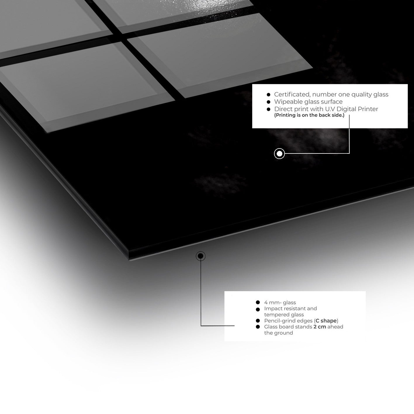 A paleta multicolor cuidadosamente selecionada adiciona dinamismo e personalidade ao seu espaço, criando um ambiente acolhedor e cheio de energia. As cores impressas em alta definição sobre vidro temperado proporcionam um acabamento brilhante e profundidade visual que nenhum outro material consegue igualar.