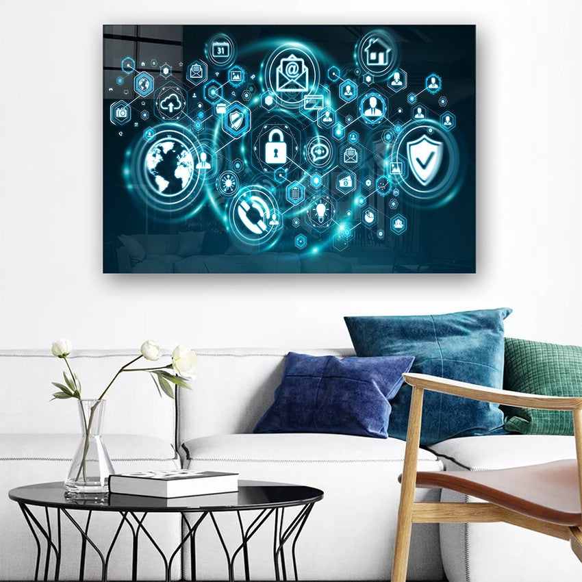 Este não é apenas um quadro - é uma declaração de estilo. O vidro temperado oferece uma luminosidade única que realça as cores vibrantes, criando um efeito visual deslumbrante que muda conforme a luz do ambiente.