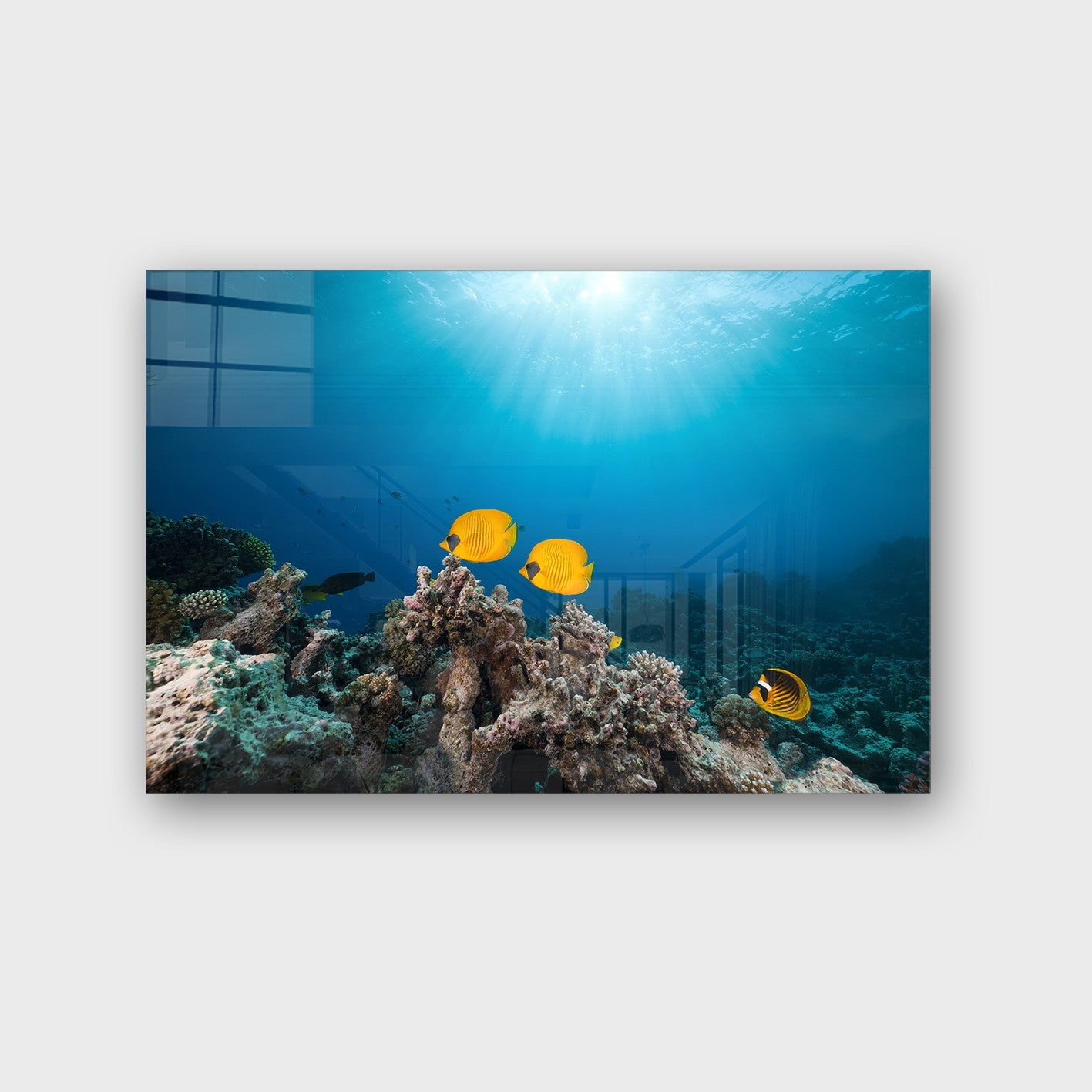 Este não é apenas um quadro - é uma declaração de estilo. O vidro temperado oferece uma luminosidade única que faz as cores ganharem vida, criando reflexos subtis que mudam ao longo do dia, proporcionando uma experiência visual sempre renovada.