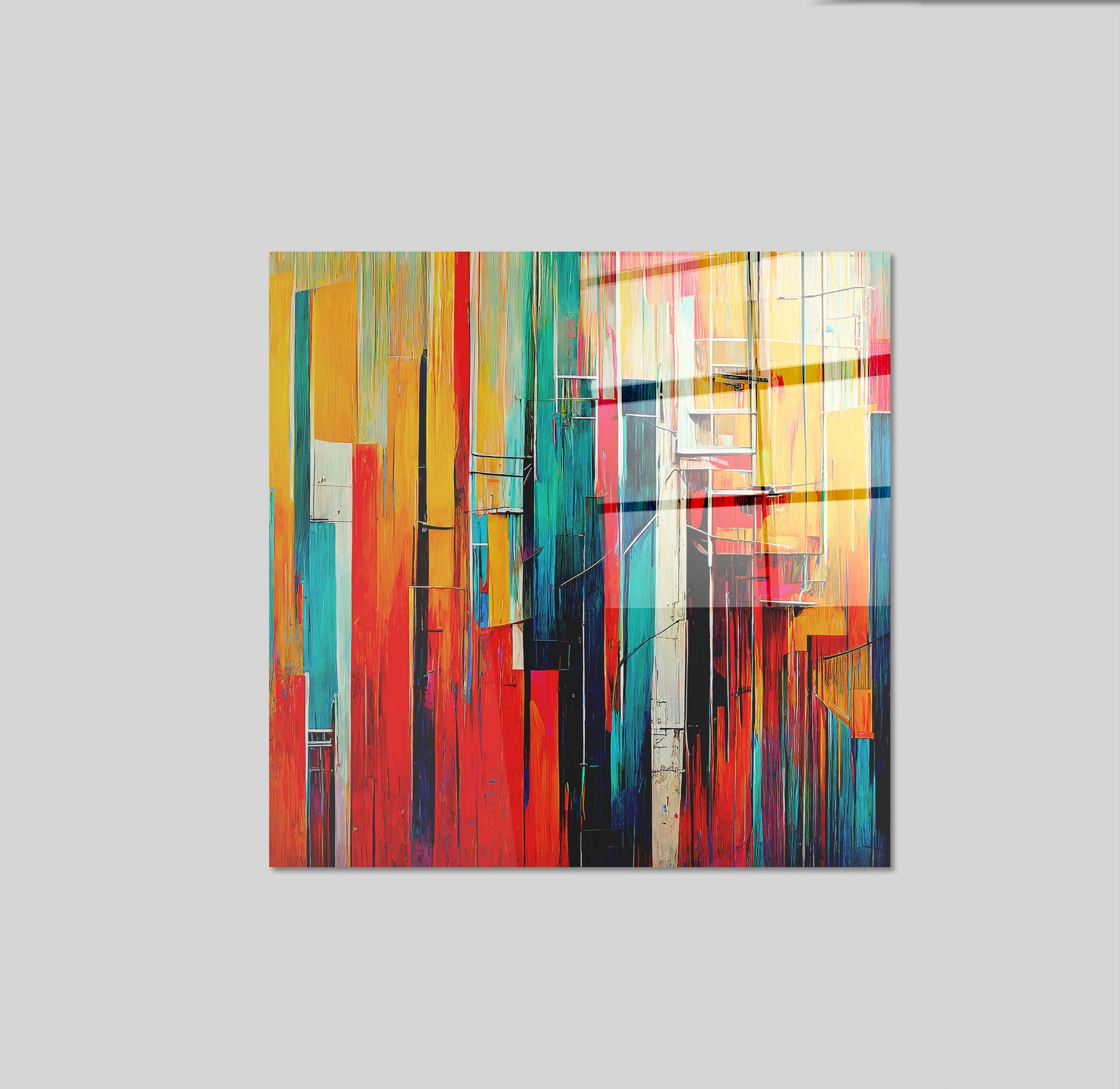 Arte em Vidro Temperado Multicolor 70x70cm - Pintura Decorativa de Alta Qualidade