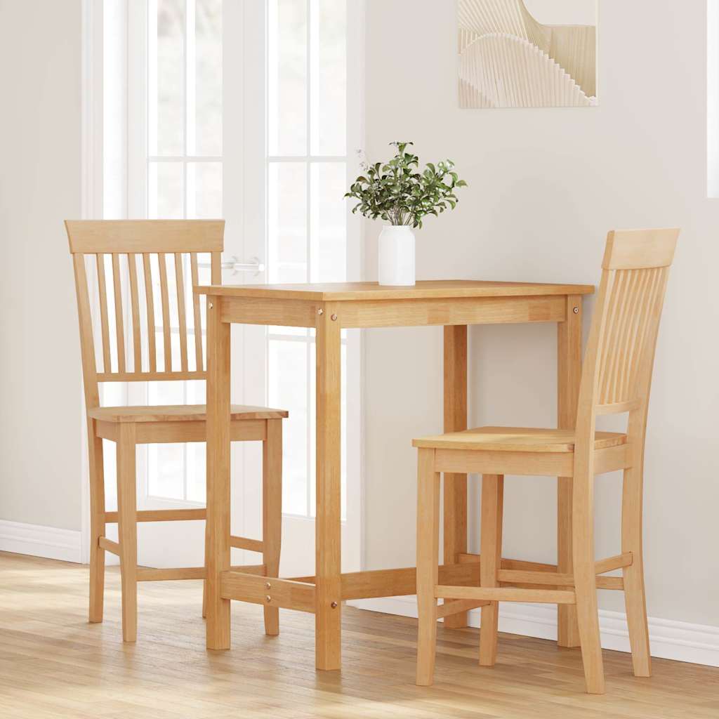Bancos de bar 2pcs natural madeira de seringueira maciça