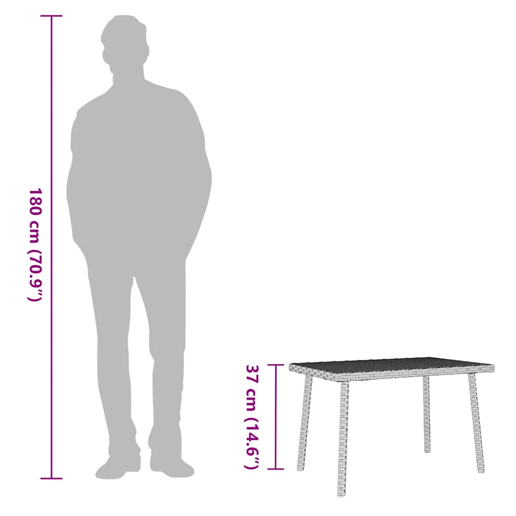 Mesa de centro de jardim retangular 60x40x37 cm vime PE