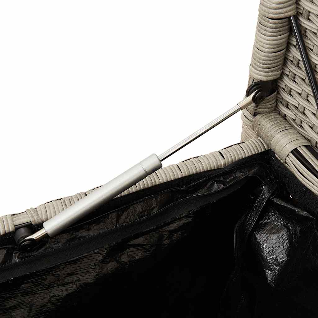 - Função de armazenamento: O assento do jardim possui espaço de armazenamento por baixo, equipado com um saco resistente à água para armazenar almofadas, brinquedos e outros itens. O saco interno pode ser fixado de forma segura ao assento com fixadores de gancho e laço, garantindo estabilidade e evitando movimentos.