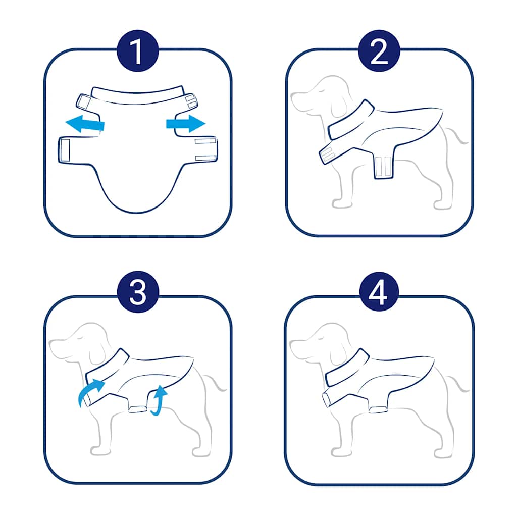 - Tiras refletoras de segurança: Equipada com tiras refletoras, esta capa de chuva para cães melhora a visibilidade em condições de pouca luz, garantindo que você e o seu cão se mantêm seguros durante os passeios noturnos.