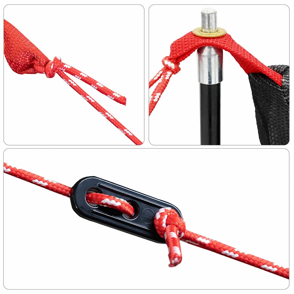 - Material de Malha: Feita de malha de alta qualidade, essa tenda interna permite que o ar circule enquanto continua forte e durável. A malha deixa a brisa entrar nas noites quentes de camping e mantém os insetos afastados. Além disso, é leve, o que facilita o transporte e a montagem.