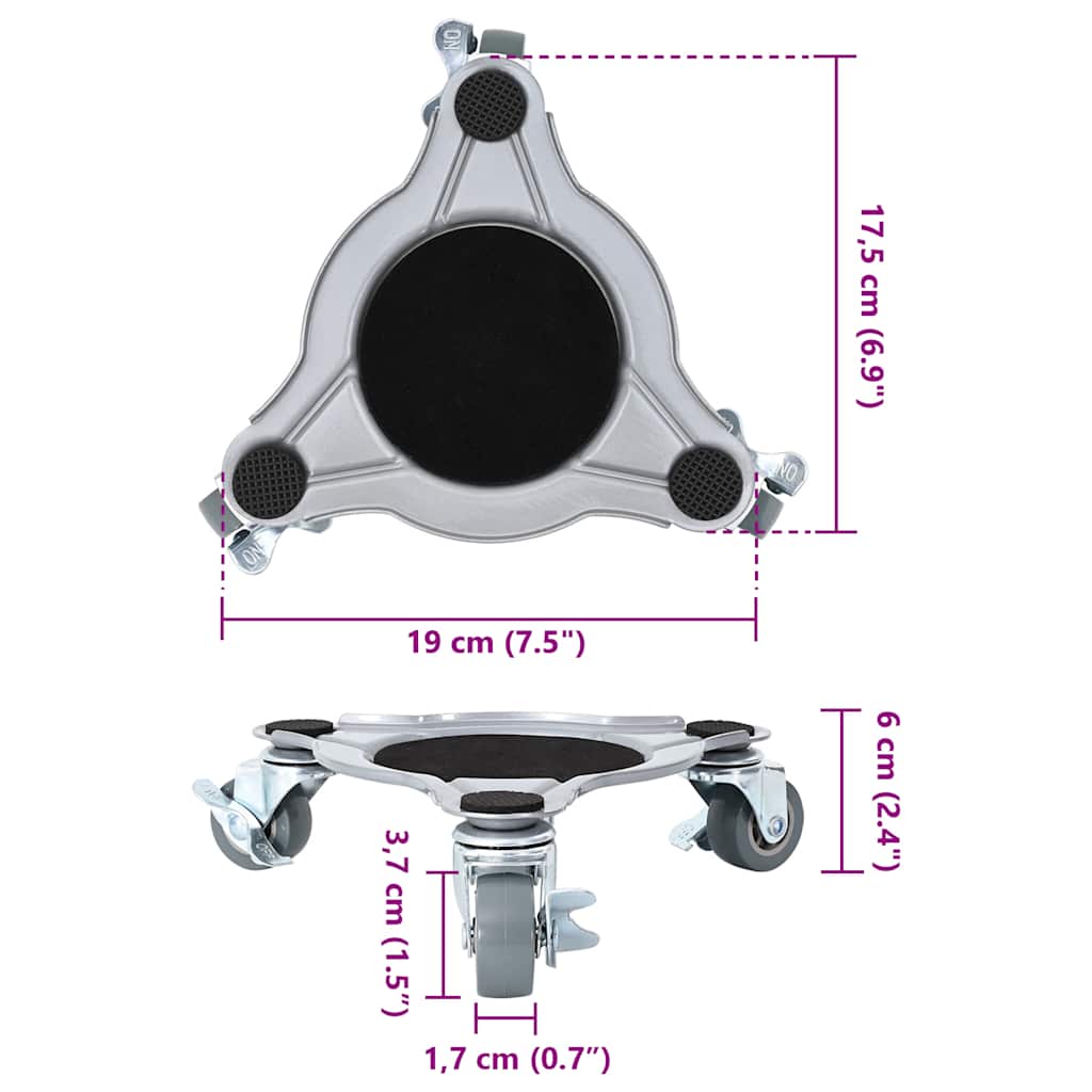 - Almofadas antiderrapantes: o rodízio para móveis foi projetado com almofadas antiderrapantes no centro e nos três cantos, proporcionando suporte acolchoado e garantindo que seus itens preciosos permaneçam protegidos contra arranhões durante o movimento.