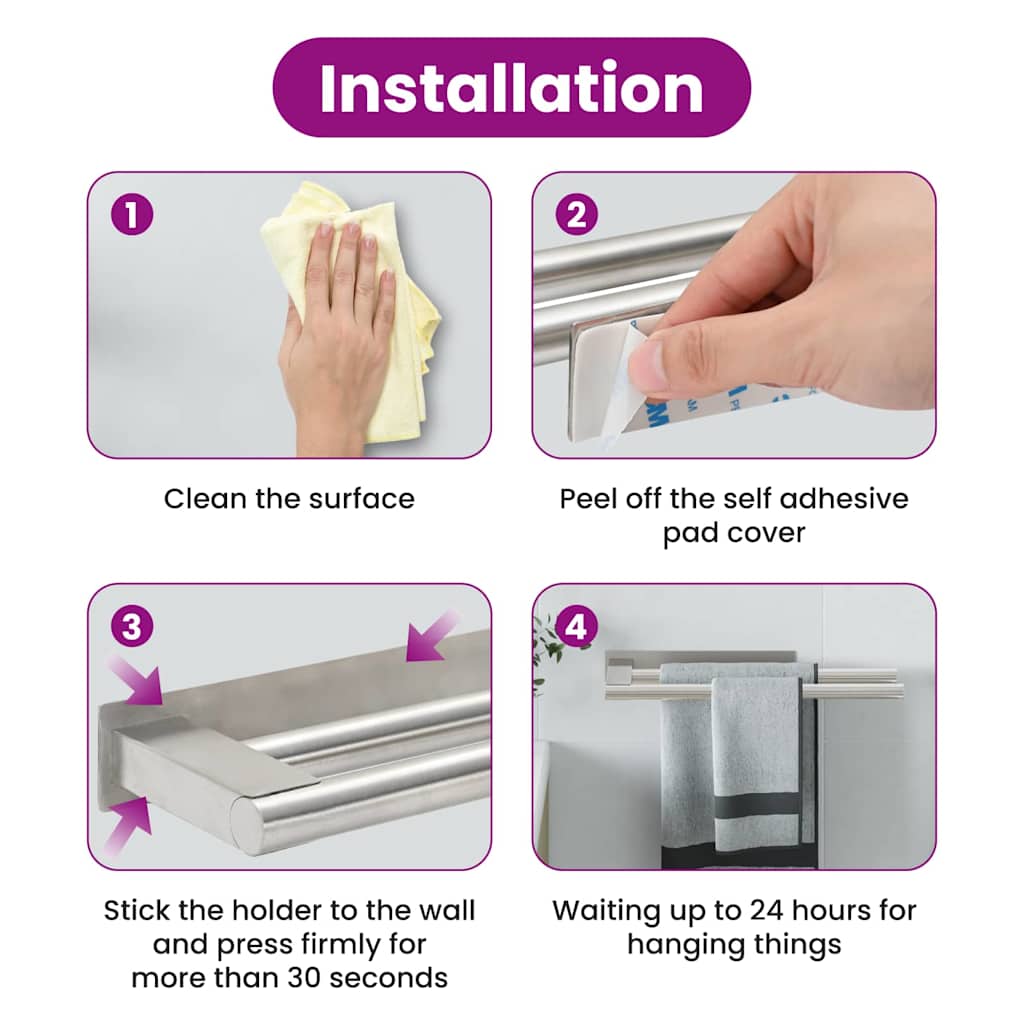- Aço Inoxidável Escovado: Fabricado em aço inoxidável de alta qualidade, este suporte para toalhas possui um acabamento escovado que traz uma aparência sofisticada e texturizada para ambientes de banheiro modernos. O material foi escolhido por sua resistência à ferrugem e natureza duradoura, oferecendo estilo e funcionalidade. Sua resistência à água garante uso a longo prazo sem degradação, tornando-o uma escolha confiável para ambientes úmidos.