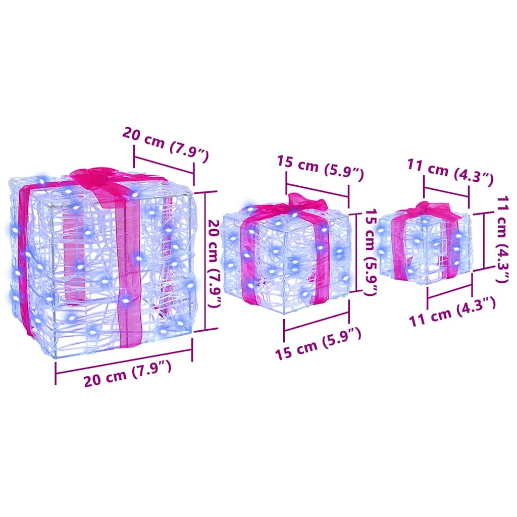 Caixa de Presente com 60 LEDs 3 pcs Azul 20 x 20 x 20 cm Acrílo