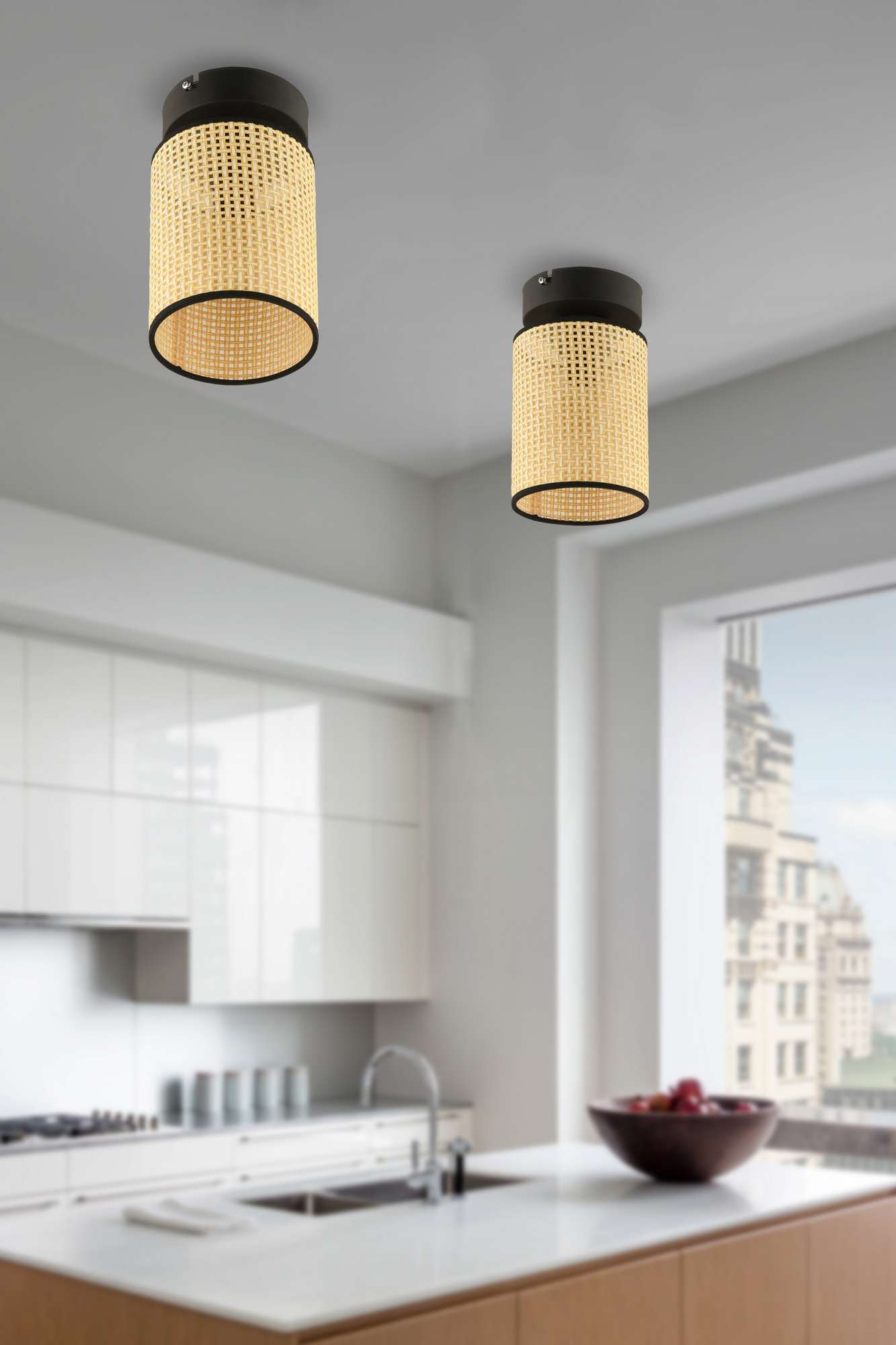 Candeeiro de Teto – 18 cm – Creme e Preto – Metal com PVC