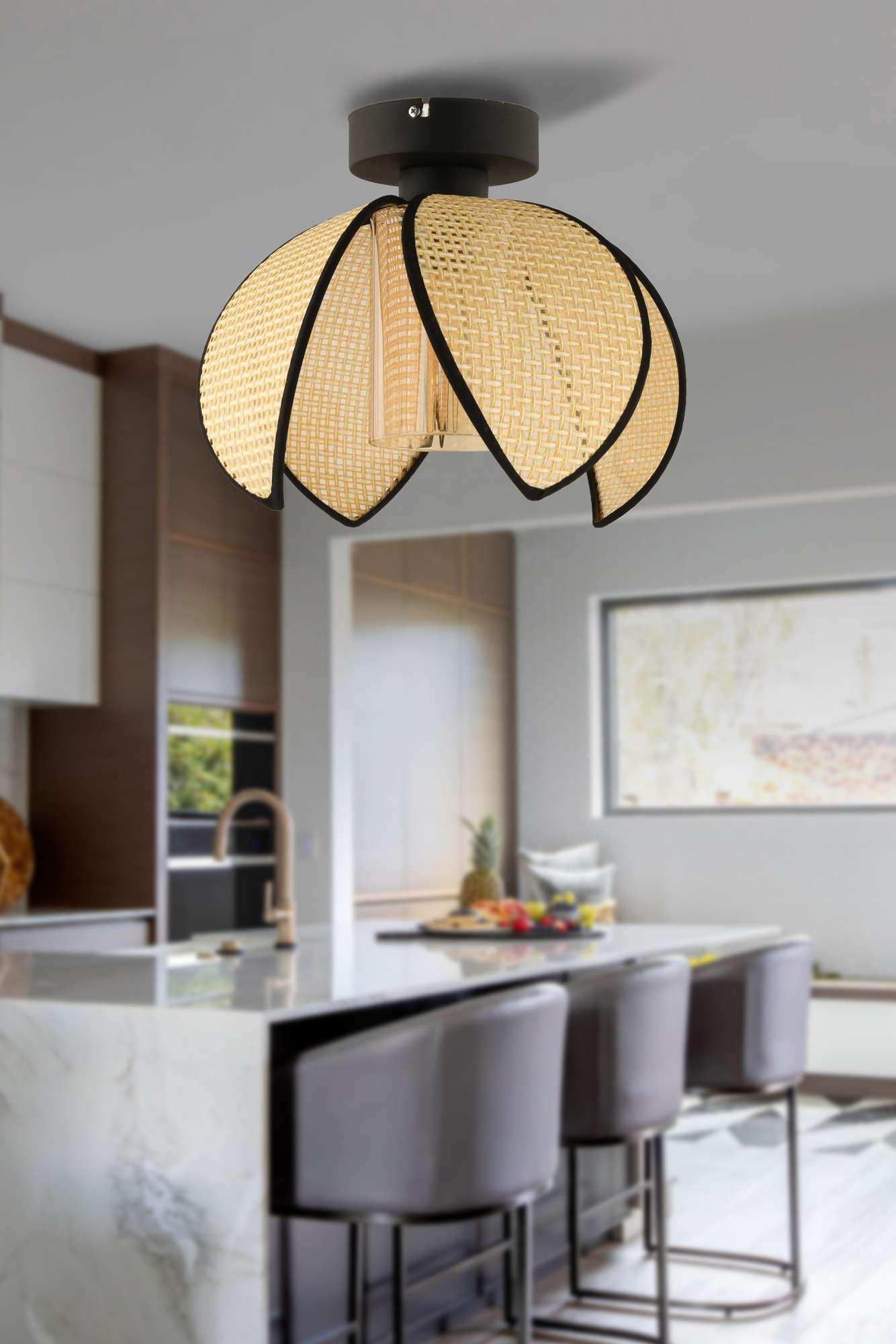 Candeeiro de Teto – 26 cm – Creme e Preto – Metal e PVC