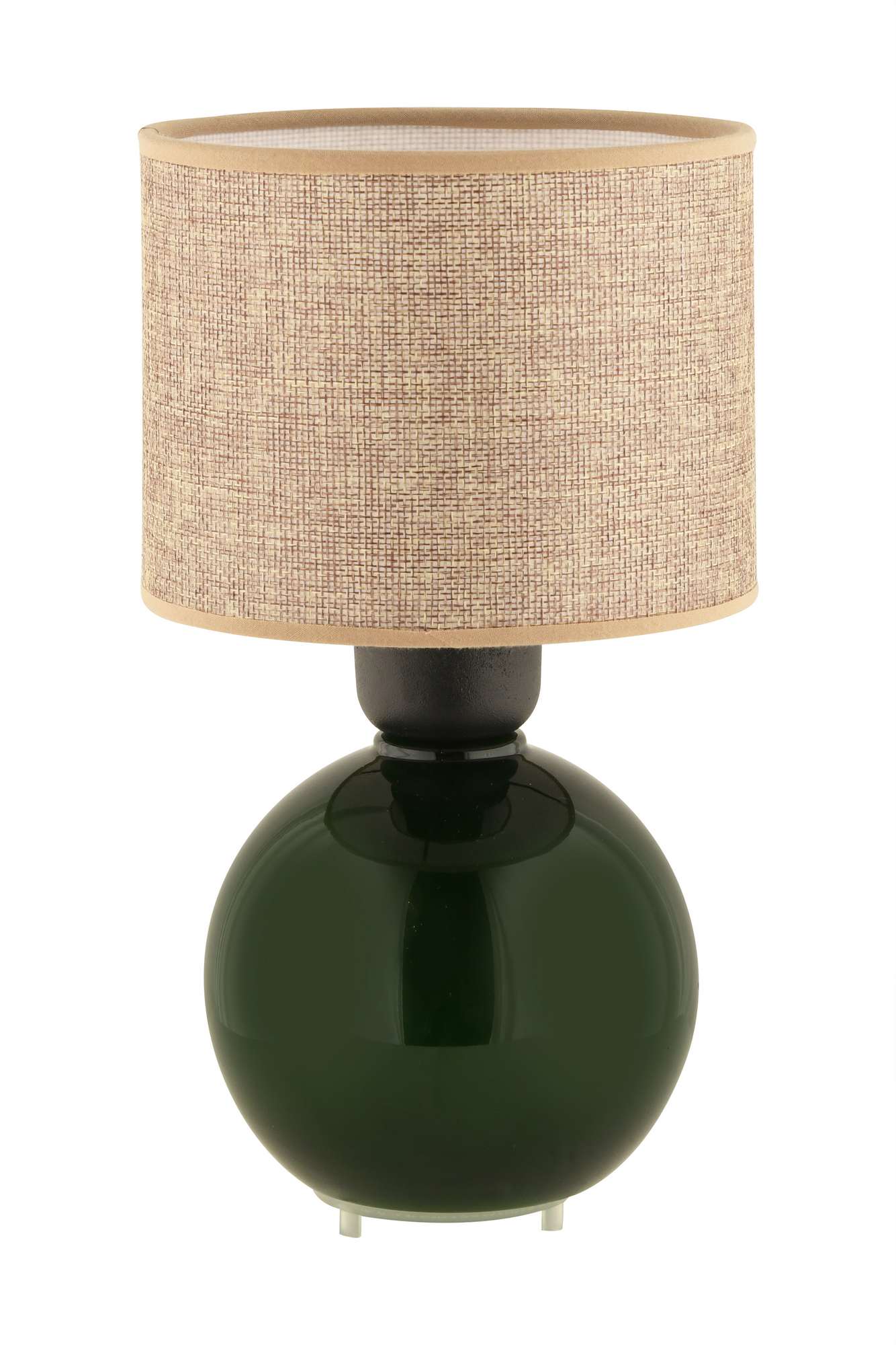 Candeeiro de Mesa – 28 cm – Bege e Verde – Vidro e Tecido