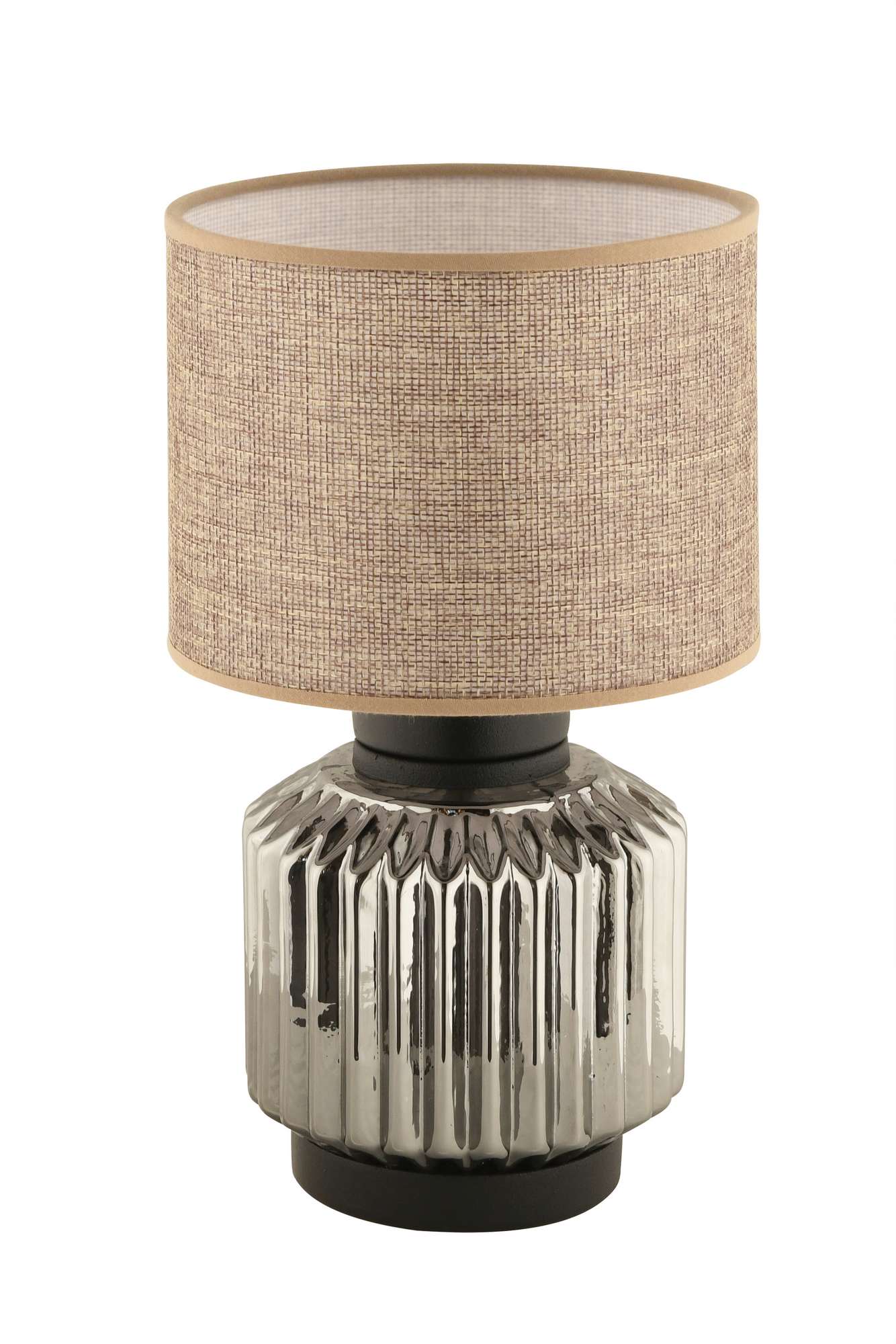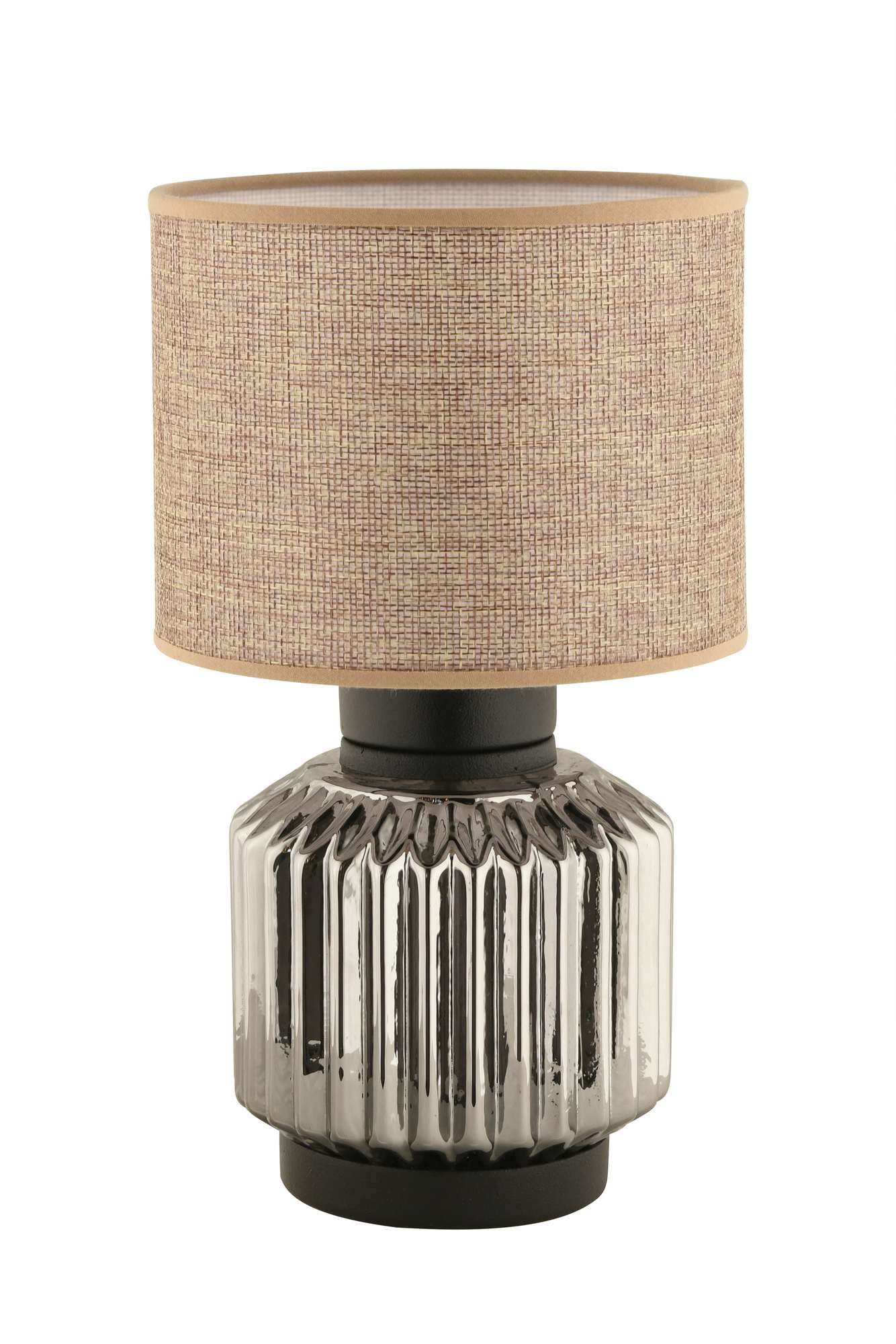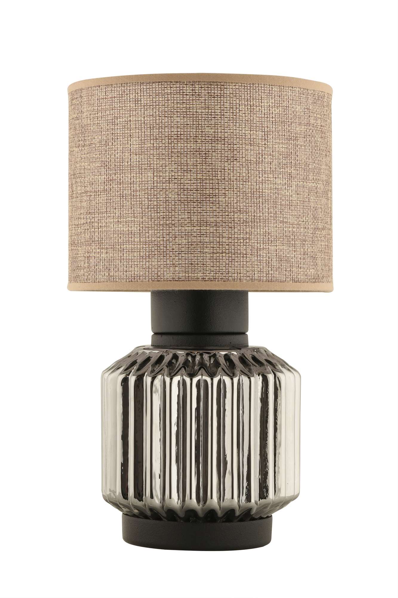 Candeeiro de Mesa – 28 cm – Bege e Cinza – Vidro e Tecido