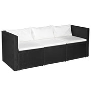 vixaXL Sofá de jardim 3 lugares vime PE preto com almofadões brancos