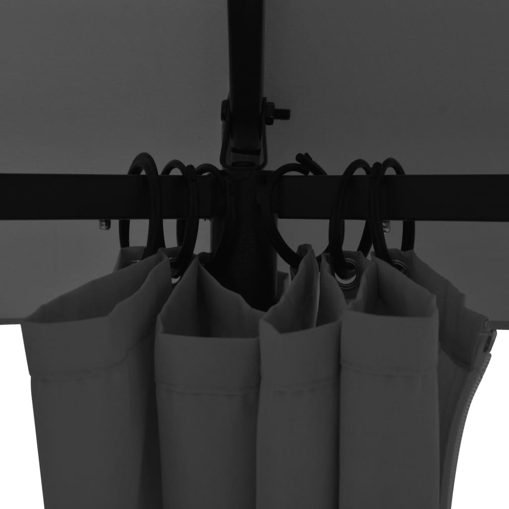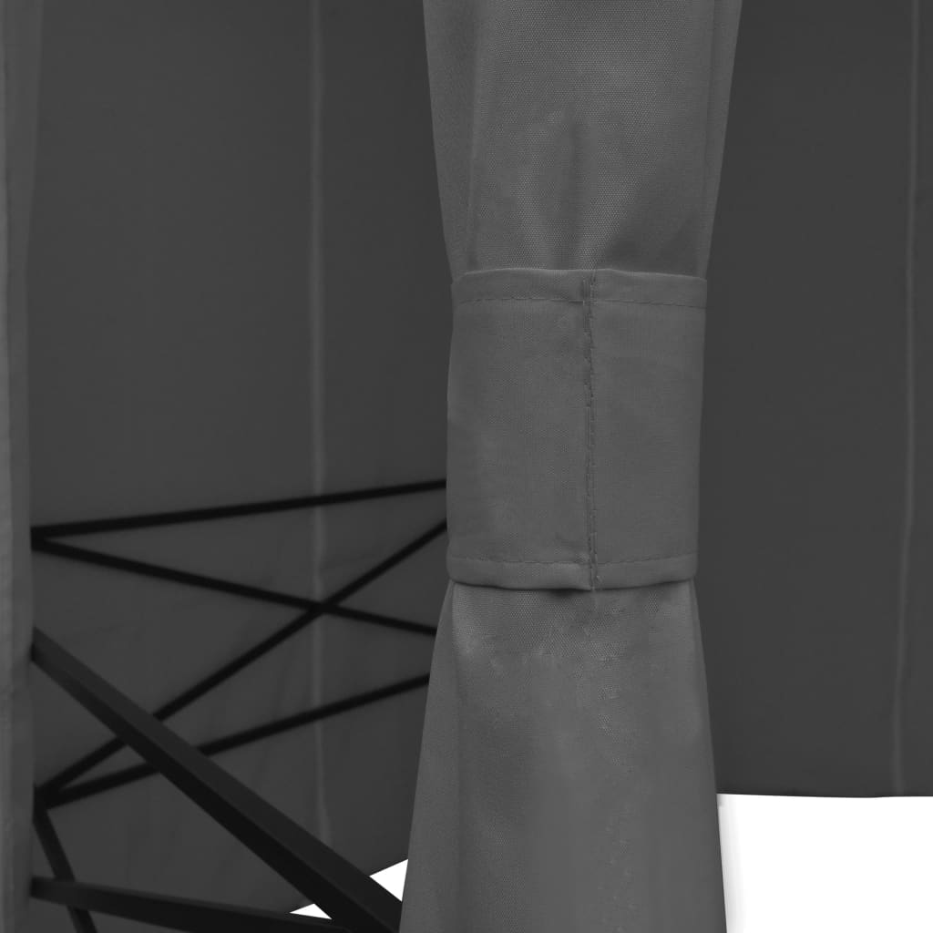 O teto e cortinas resistentes à água são feitos de tecido de poliéster com revestimento a PA. A estrutura foi solidamente construída a partir de aço revestido a pó robusto, sendo portanto resistente à ferrugem e consideravelmente estável. O toldo apresenta um design elegante com ventilação dupla para uma melhor passagem do ar. As cortinas de poliéster são fáceis de limpar e podem ser fechadas para ter mais privacidade ou podem ser mantidas abertas com os prendedores incluídos.