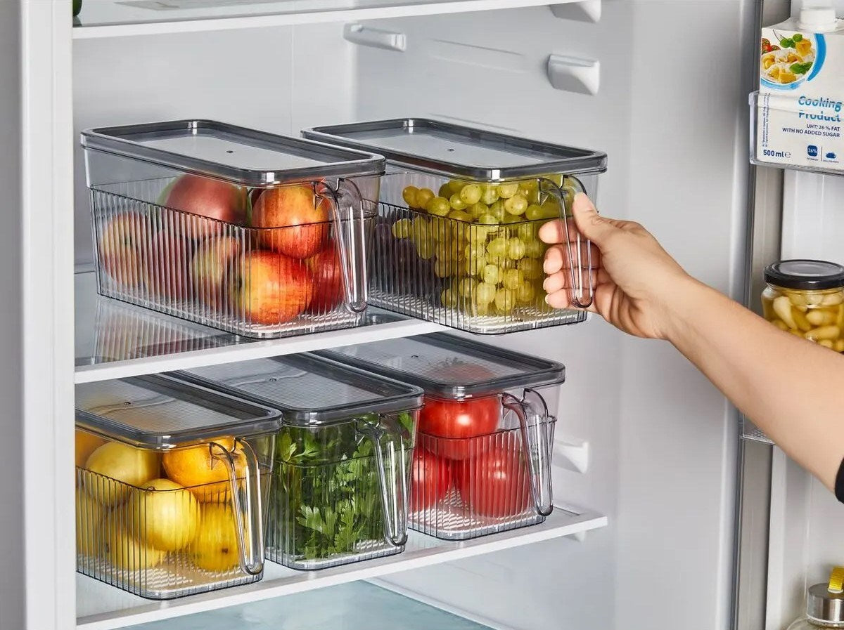Feito de plástico durável e fácil de limpar, nosso Conjunto de Organizadores de Geladeira foi projetado para durar. O design transparente permite que você veja facilmente o conteúdo de cada organizador, para que possa pegar rapidamente o que precisa sem complicações. E quando chegar a hora de limpar, basta colocá-los na máquina de lavar louça para uma lavagem rápida e conveniente.
