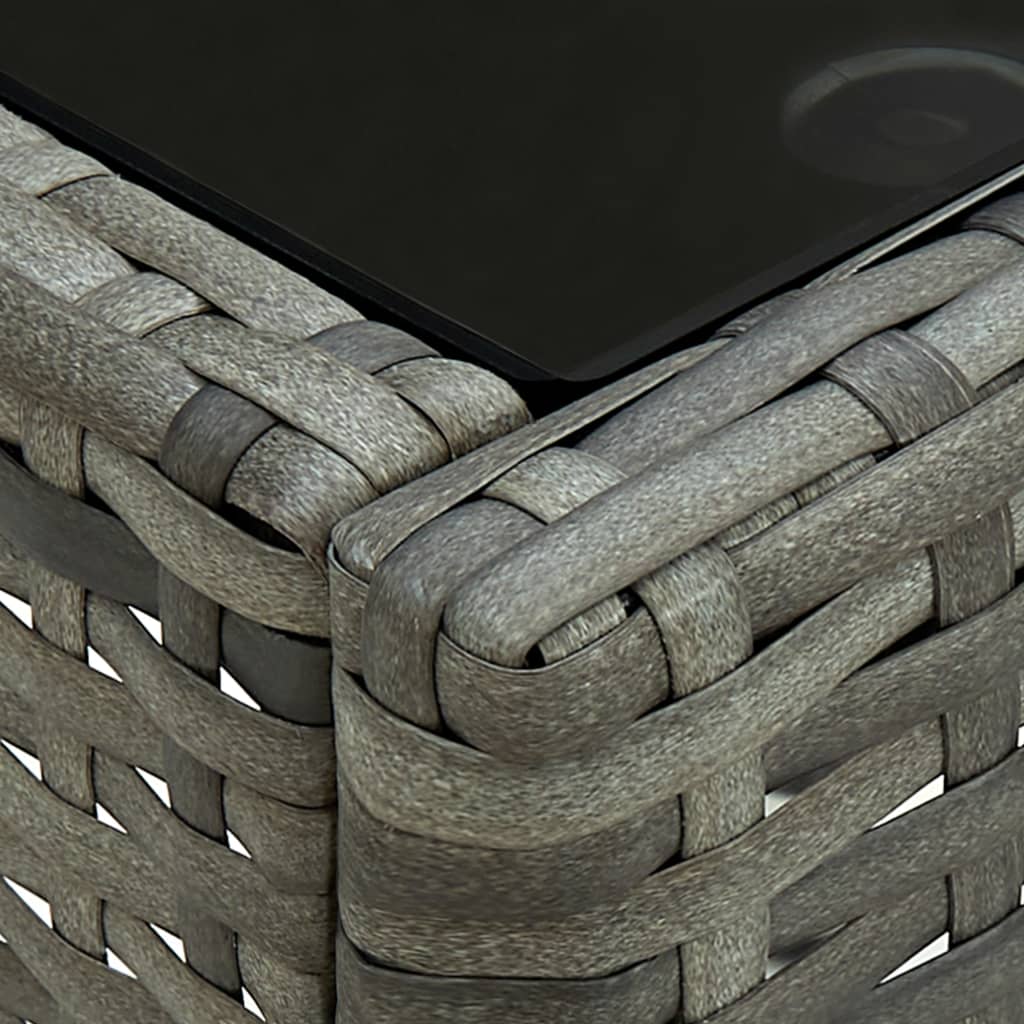 3 pcs conjunto bistrô com almofadões vime PE cinzento