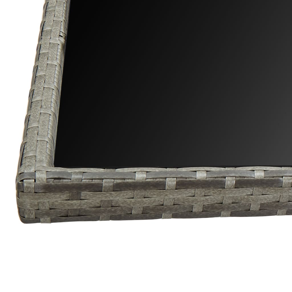 Este conjunto de jantar em vime, com um design elegante, será uma ótima escolha para refeições ao ar livre ou para relaxar no jardim. As estruturas de aço revestido a pó tornam a mesa, as cadeiras e os bancos fortes e resistentes e, devido à construção leve, todas as partes são fáceis de mover. Graças ao vime resistente às intempéries e impermeável, o conjunto de jantar é fácil de limpar. O tampo de vidro também é fácil de limpar com um pano húmido.