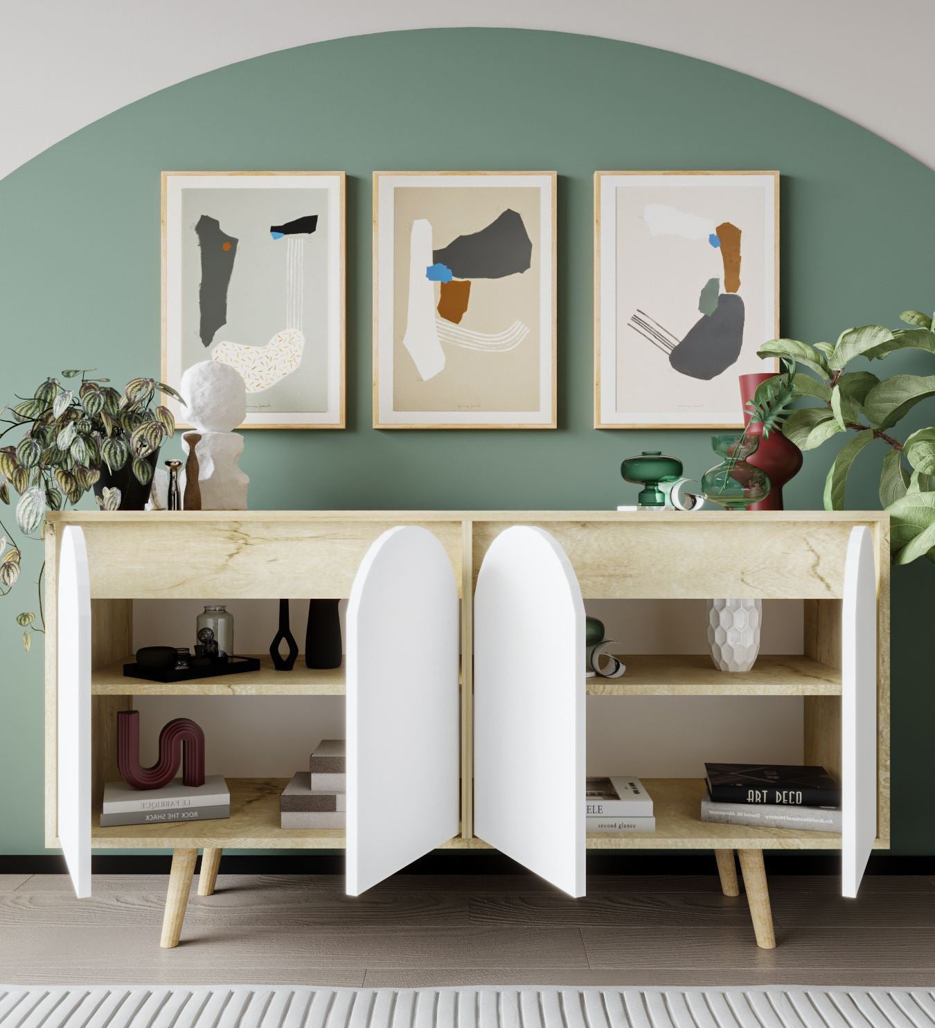 Aparador – 150cm – Carvalho Safira e Branco – Aglomerado com melamina