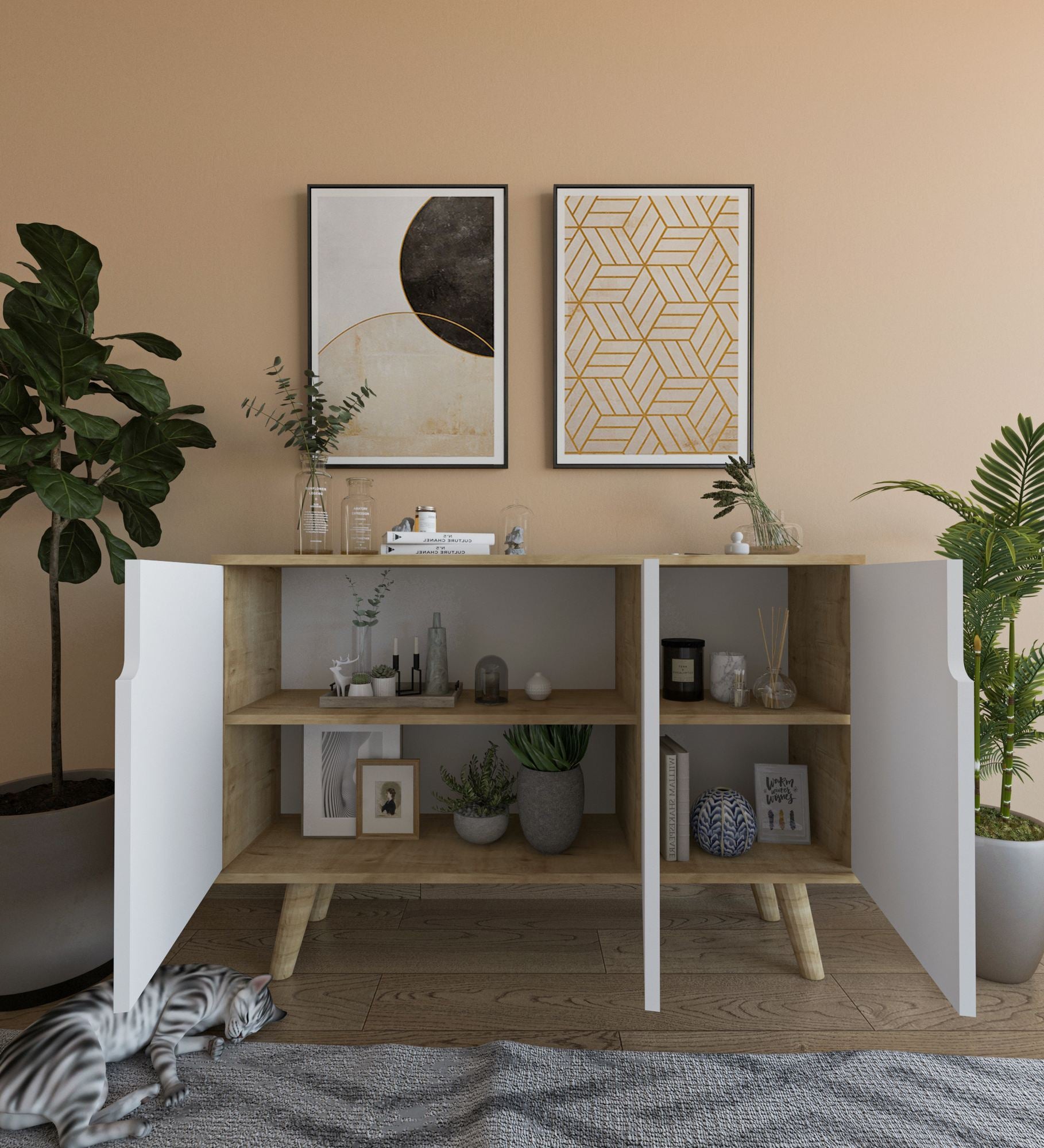 Aparador – 120 cm – Carvalho Safira e Branco – Aglomerado revestido de melamina