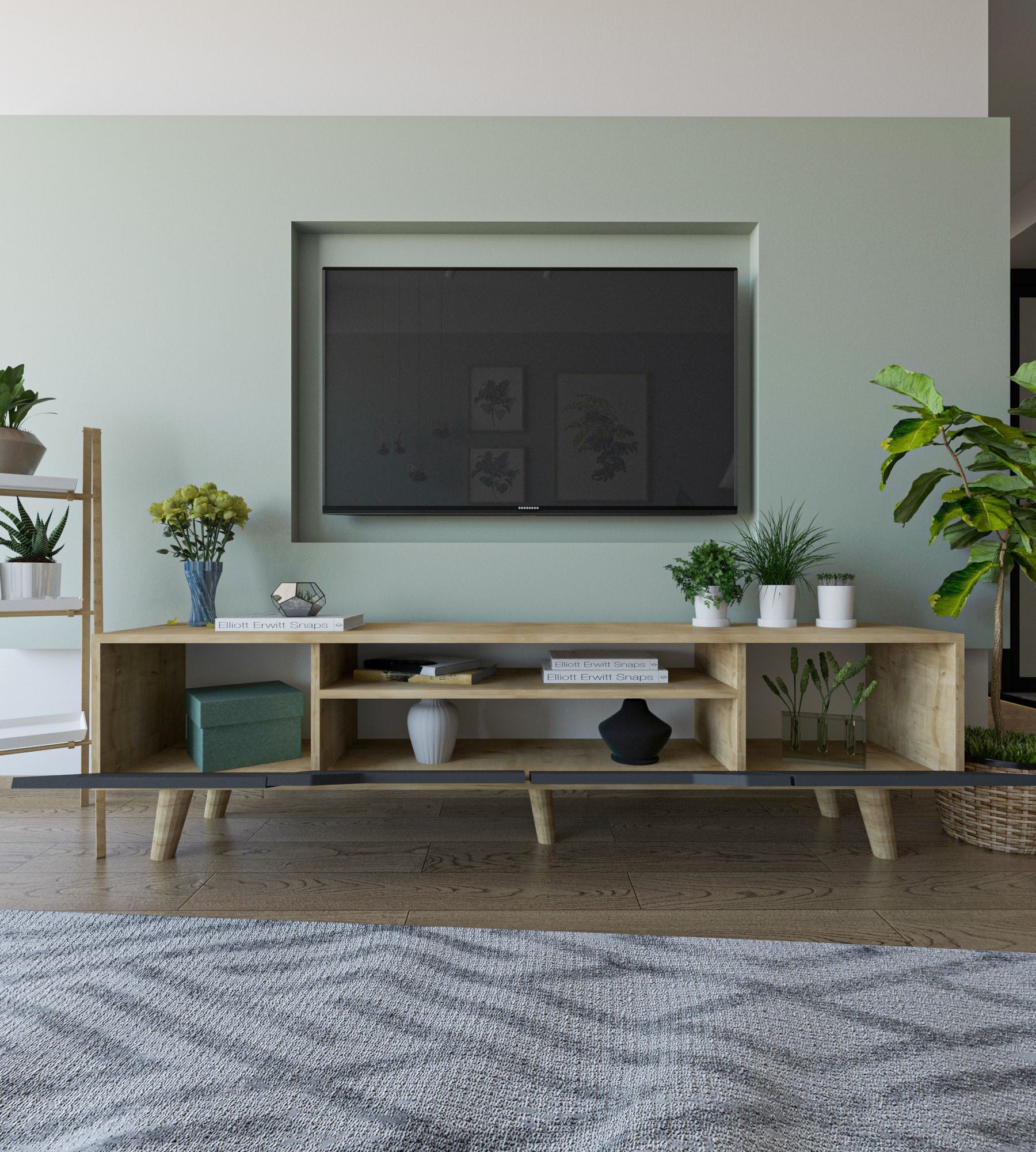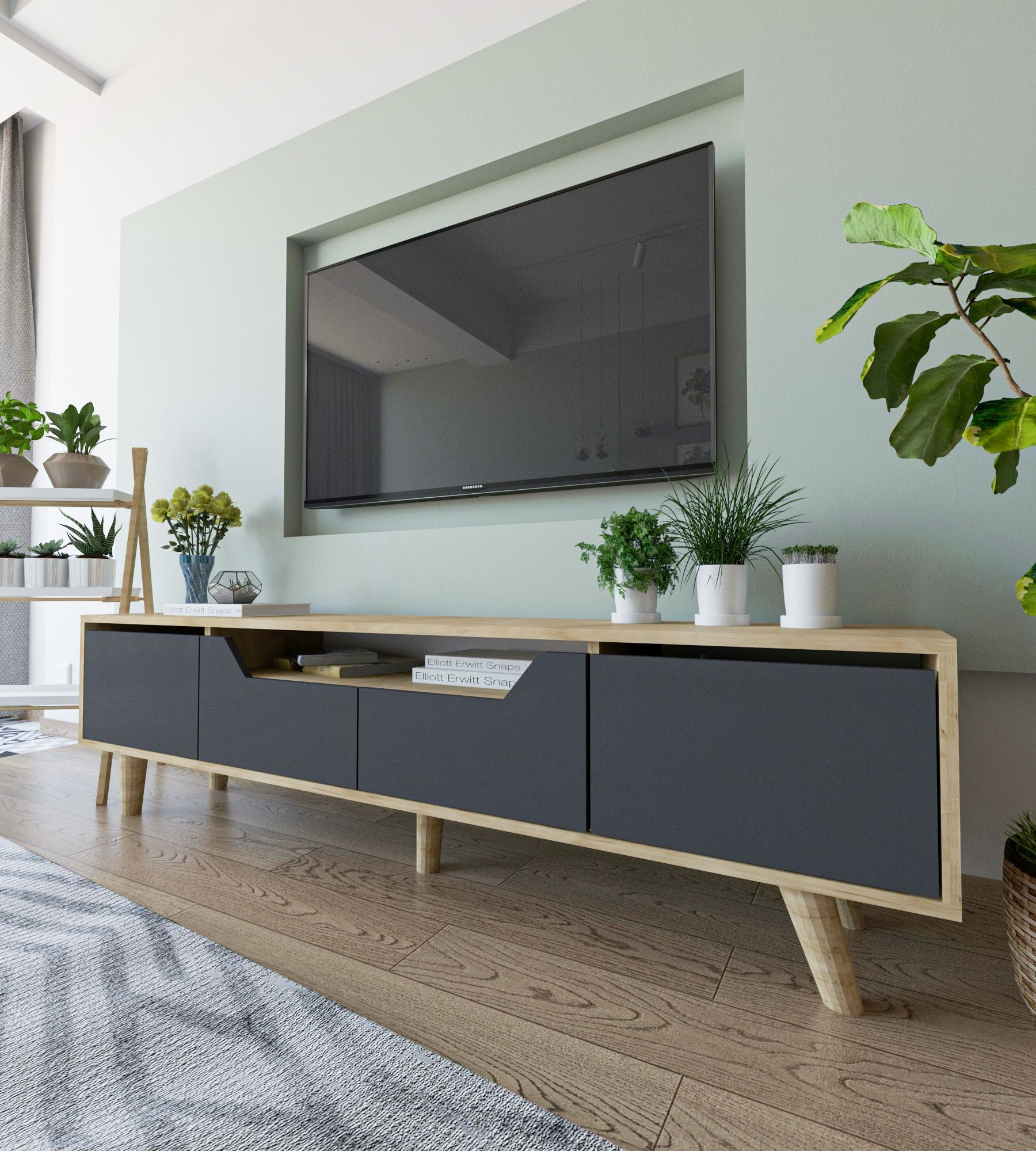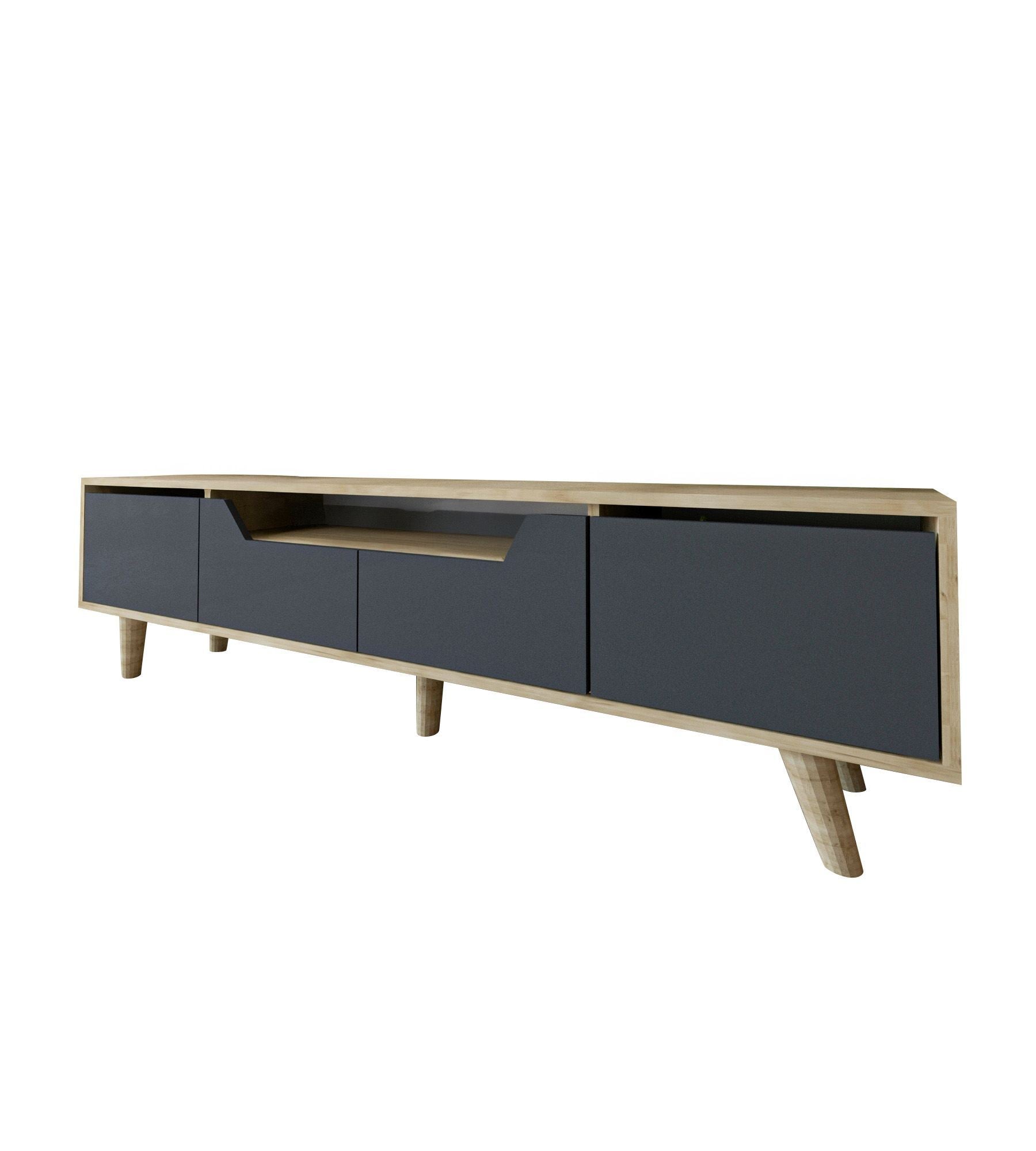 Móvel de TV – 180 cm – Carvalho Safira e Antracite – Aglomerado revestido de melamina