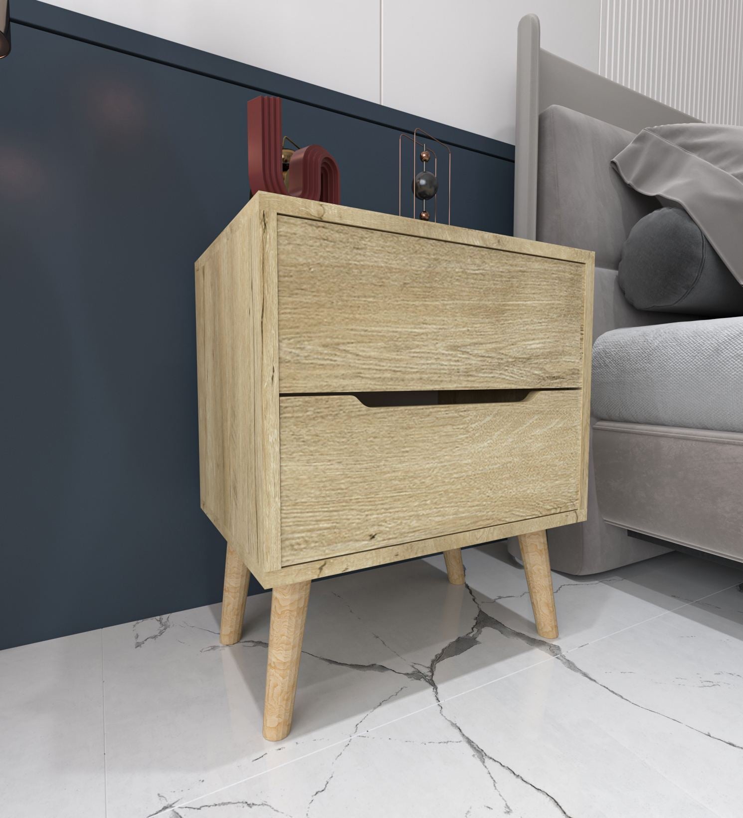 Imagine voltar para casa após um longo dia e ter tudo o que você precisa ao seu alcance. Com uma capacidade de carga de prateleira de 30 kg, você pode ter certeza de que seus pertences estão seguros e protegidos. As pernas de madeira de 20 cm elevam o criado-mudo do chão, criando uma sensação de leveza e arejamento em seu quarto.