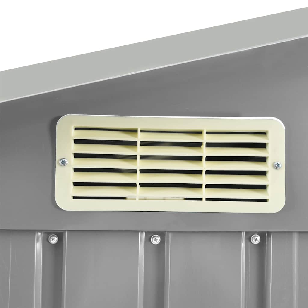 Esta casa de arrumação foi construída em ferro galvanizado, por isso é estável e fácil de cuidar. O abrigo de jardim possui respiradouros tanto na parte frontal como na traseira, garantindo uma excelente ventilação. A sua porta individual deslizante, com puxador de plástico na frente, facilita a entrada e a saída.