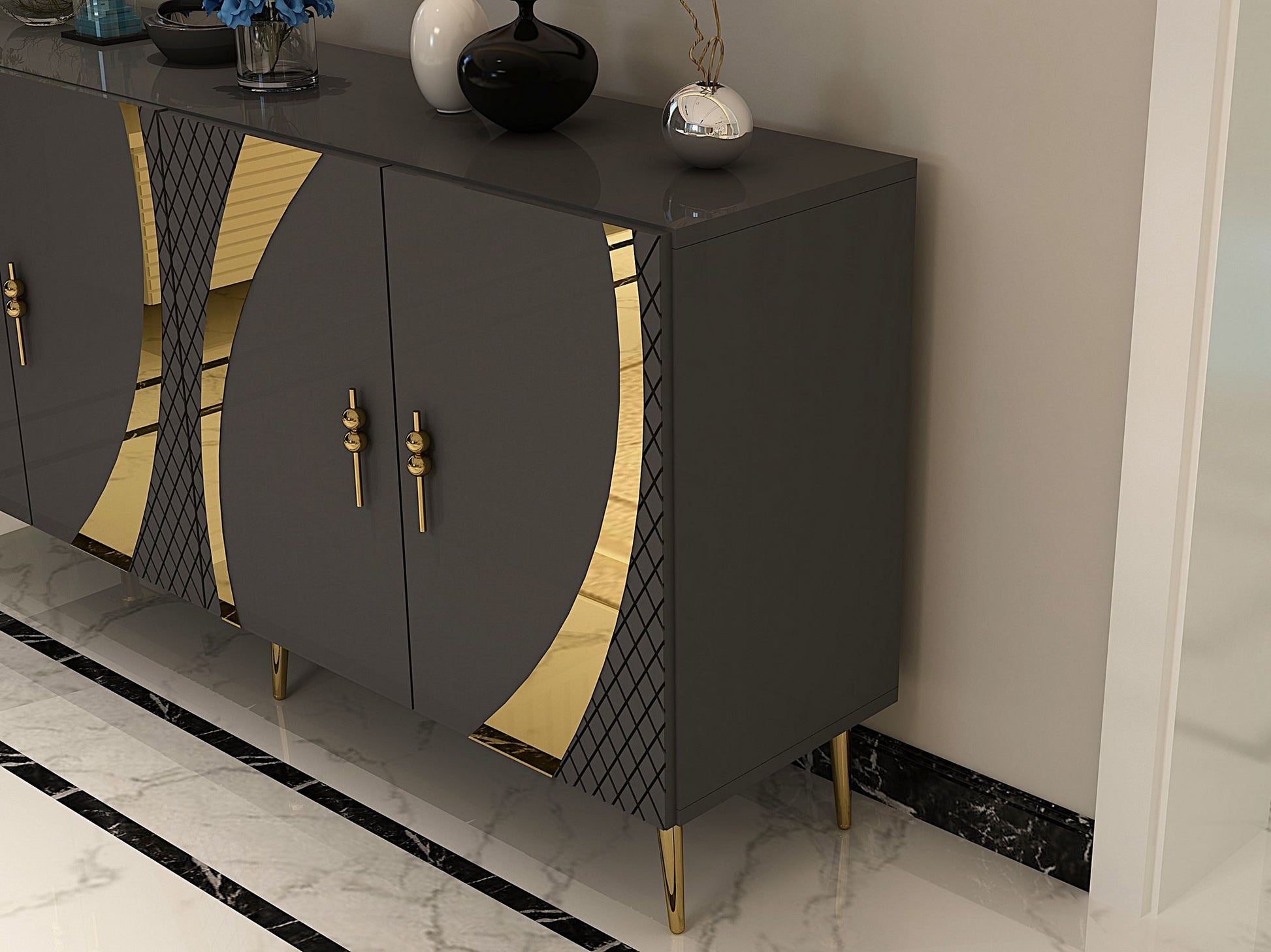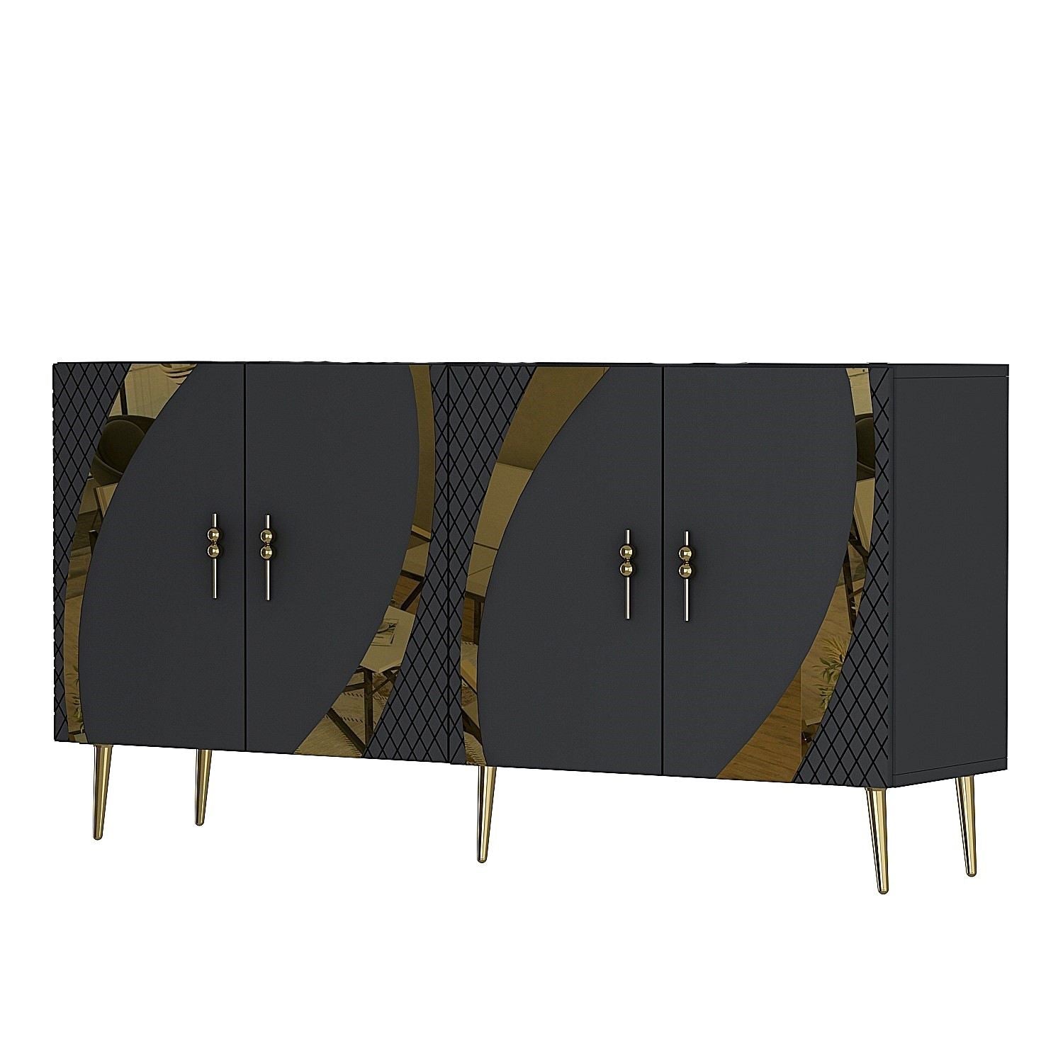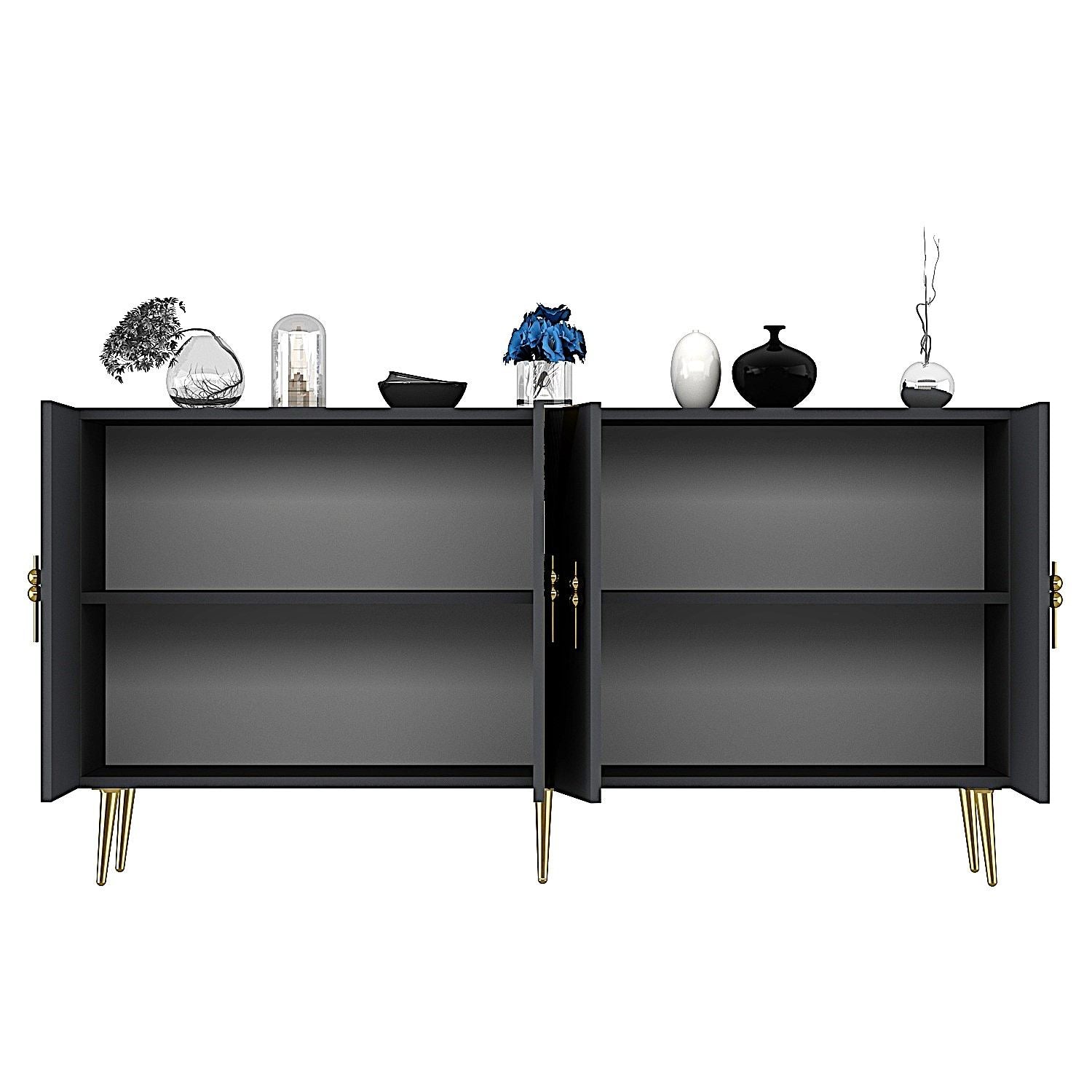 Aparador – 150 cm – Antracite e Dourado – Painéis de Partículas