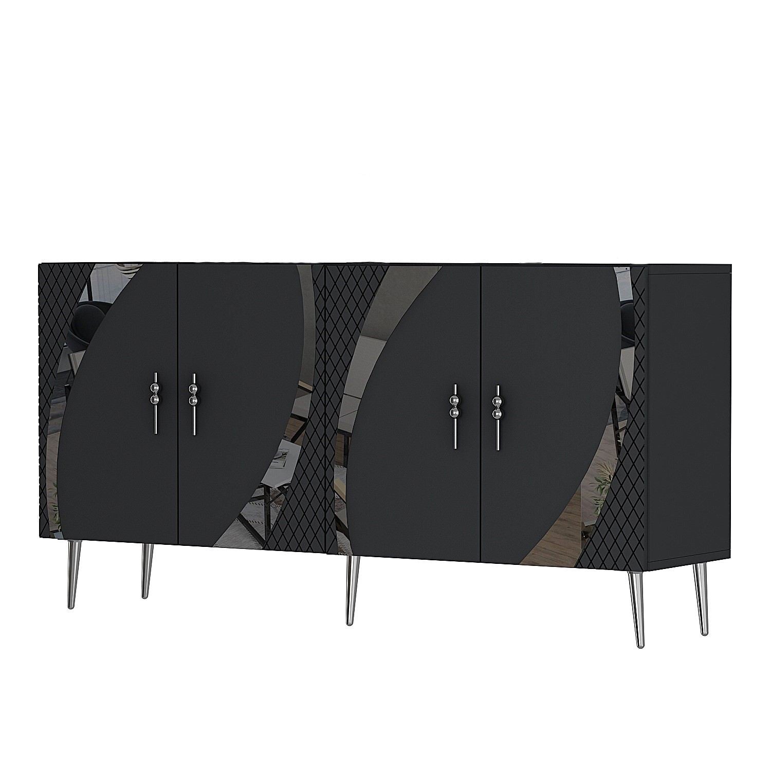 Aparador – 150 cm – Antracite e Prata – Painel de partículas com revestimento a melamina