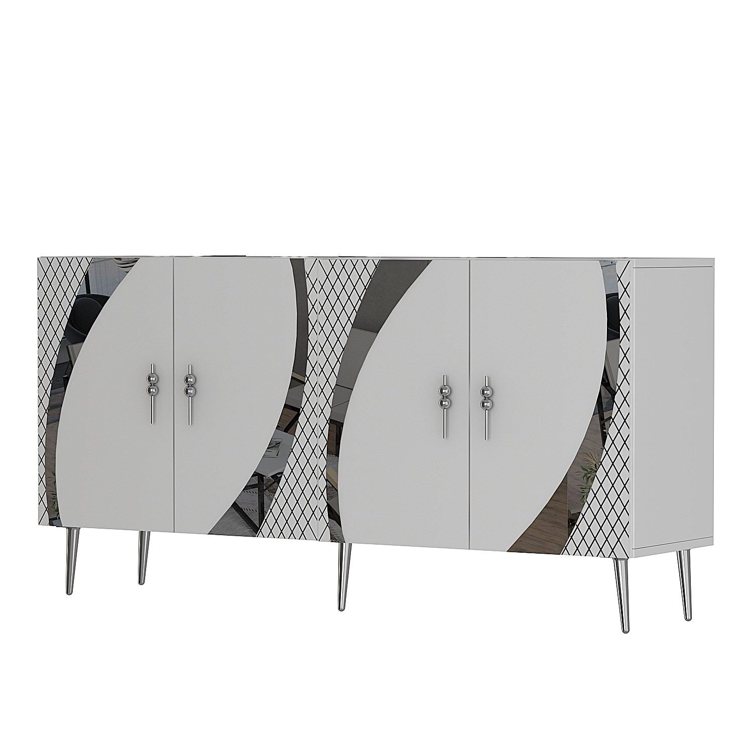 Aparador – 150cm – Branco e Prata – painel de partículas revestido a melamina