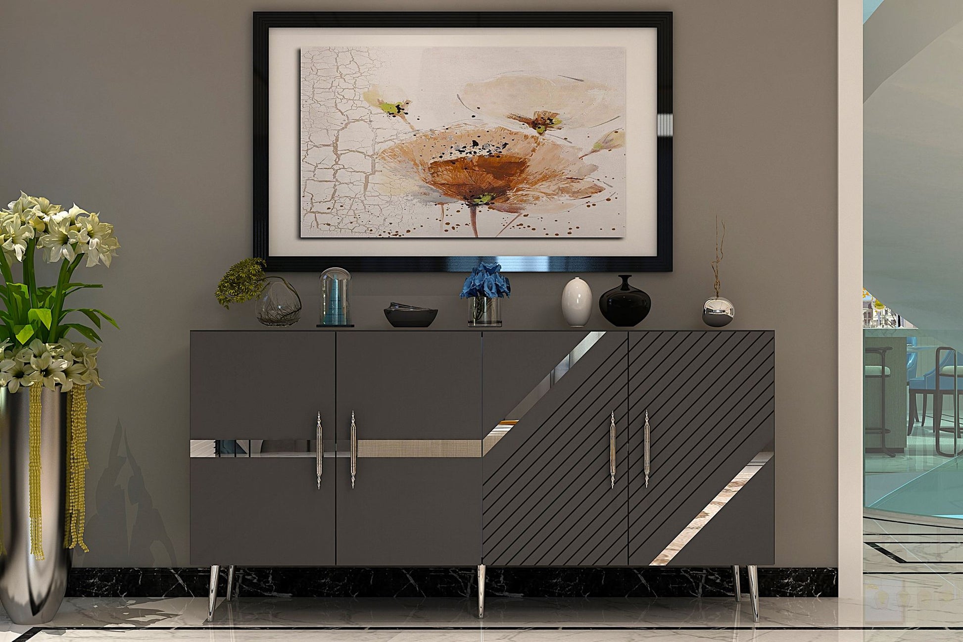 O design elegante desta consola, combinado com as cores antracite e prata, transmite uma sensação de luxo e requinte. Elevará instantaneamente o aspeto da sua sala de estar, do seu corredor ou de qualquer espaço que escolher para a colocar.