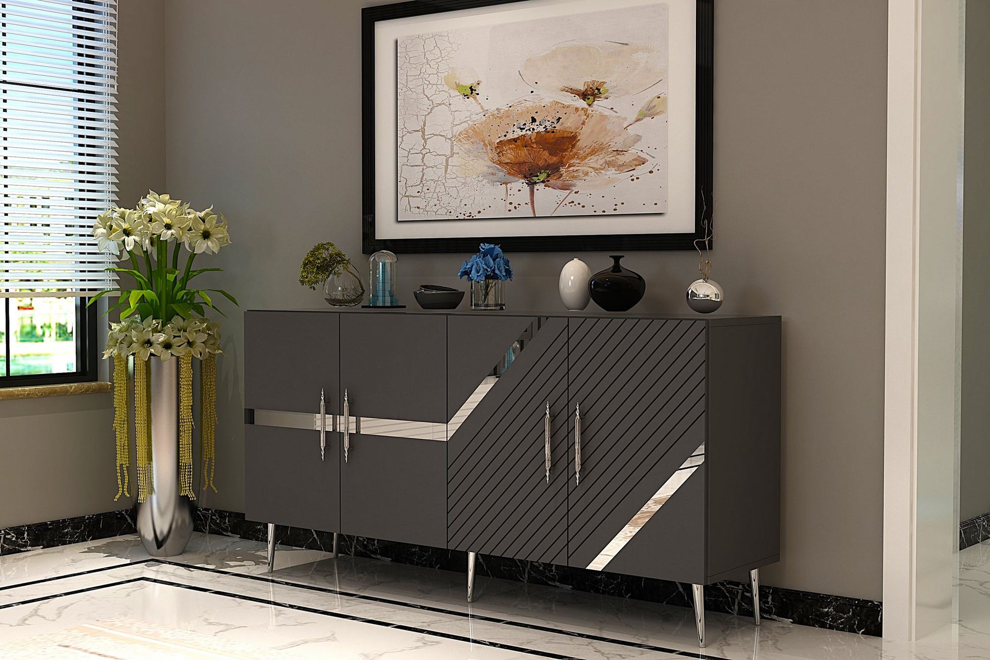 Aparador – 150 cm – Antracite e Prata – Painéis de partículas revestidos a melamina