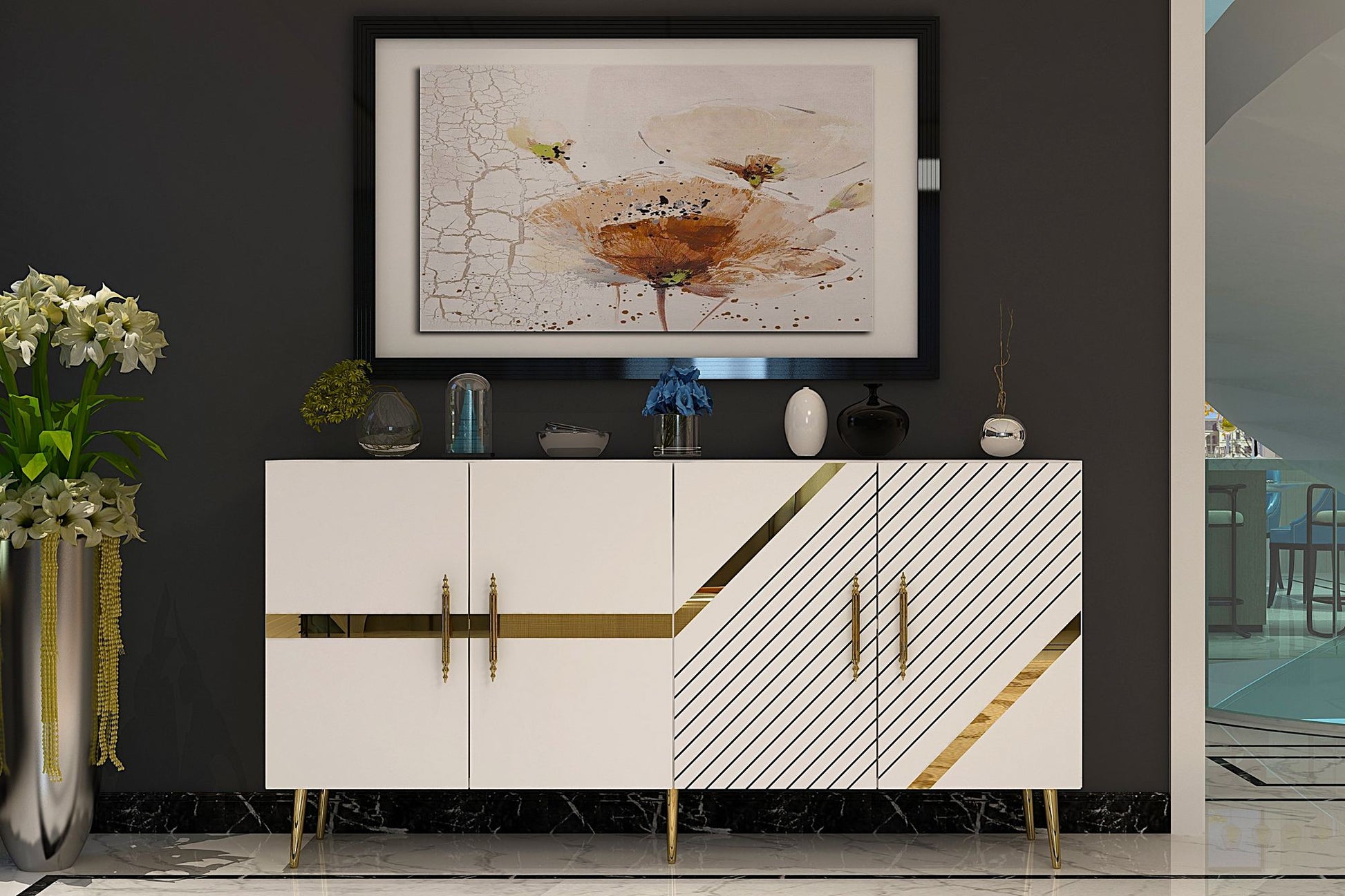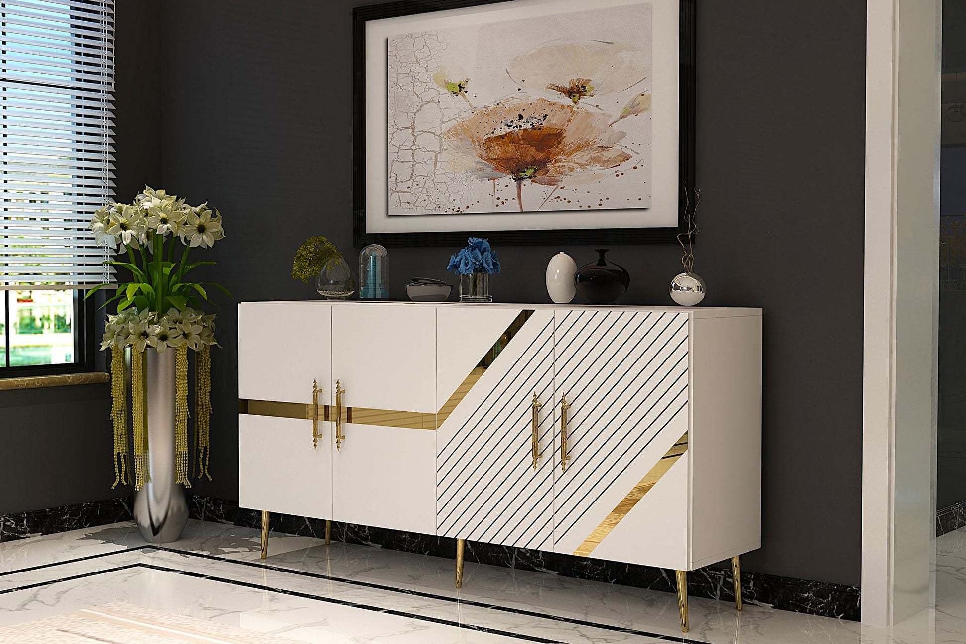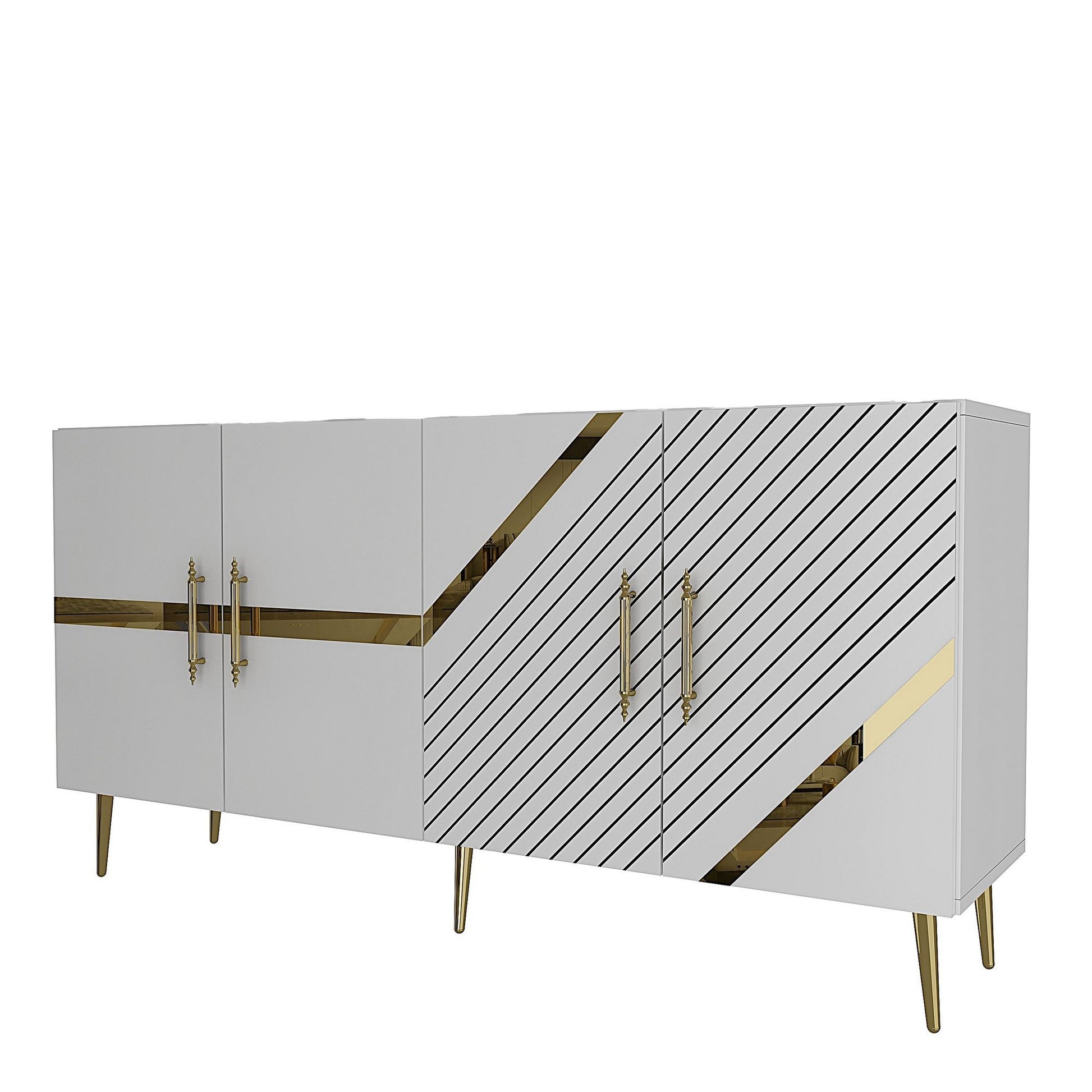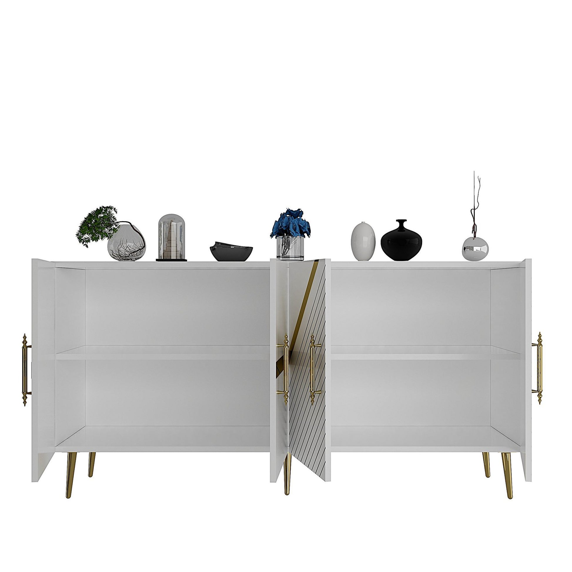 Aparador – 150 cm – Branco e Dourado – Painel de partículas revestido a melamina
