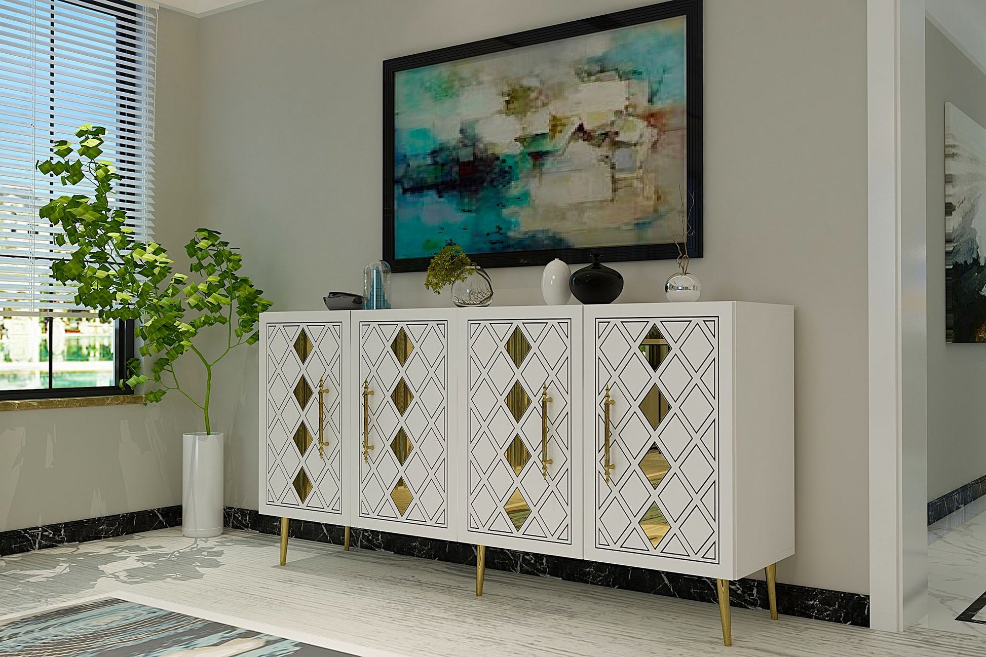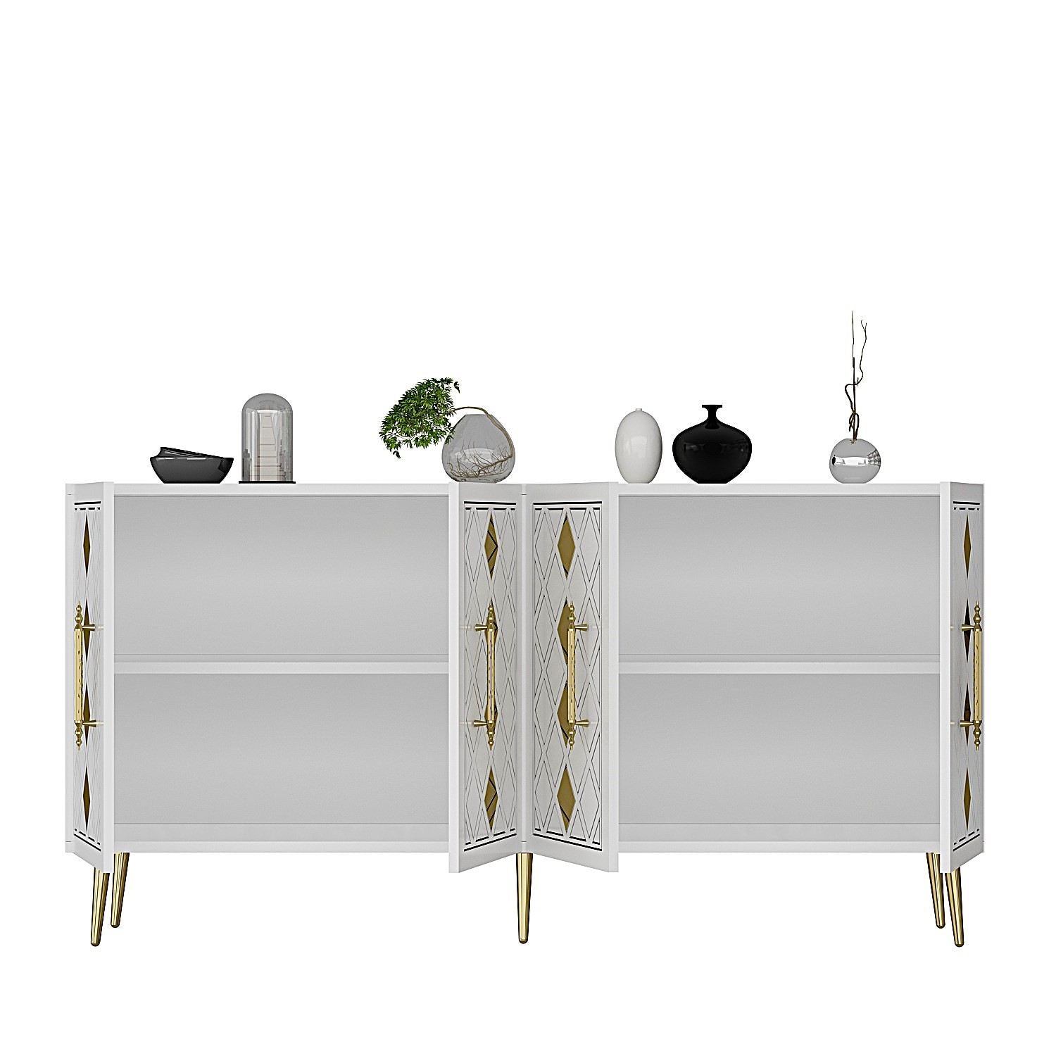 Aparador – 150 cm – Branco e Dourado – Painel de partículas revestido a melamina