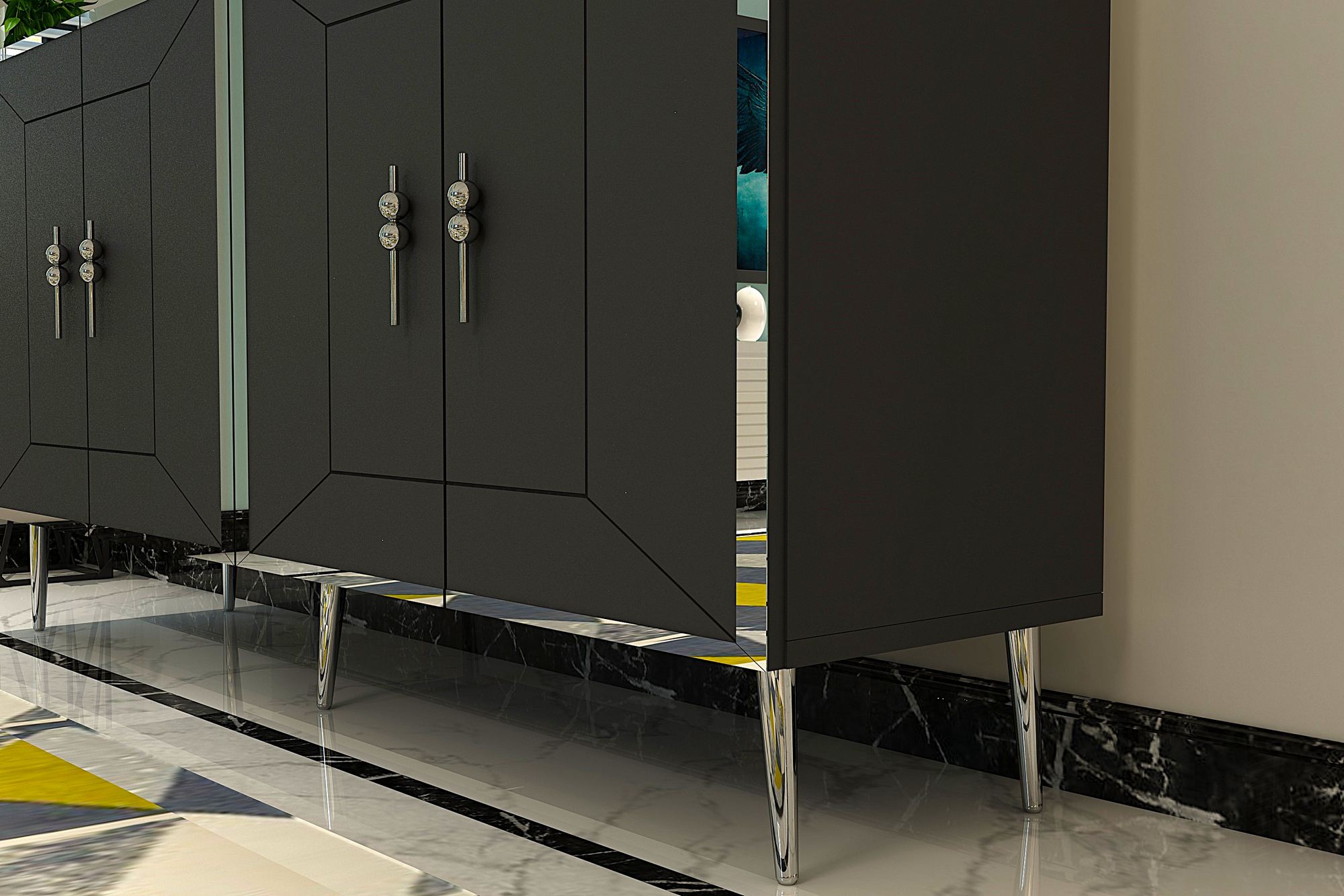 O design elegante desta consola, combinado com as cores antracite e prata, transmite uma sensação de luxo e requinte. Elevará instantaneamente o aspeto da sua sala de estar, do seu corredor ou de qualquer espaço que escolher para a colocar.