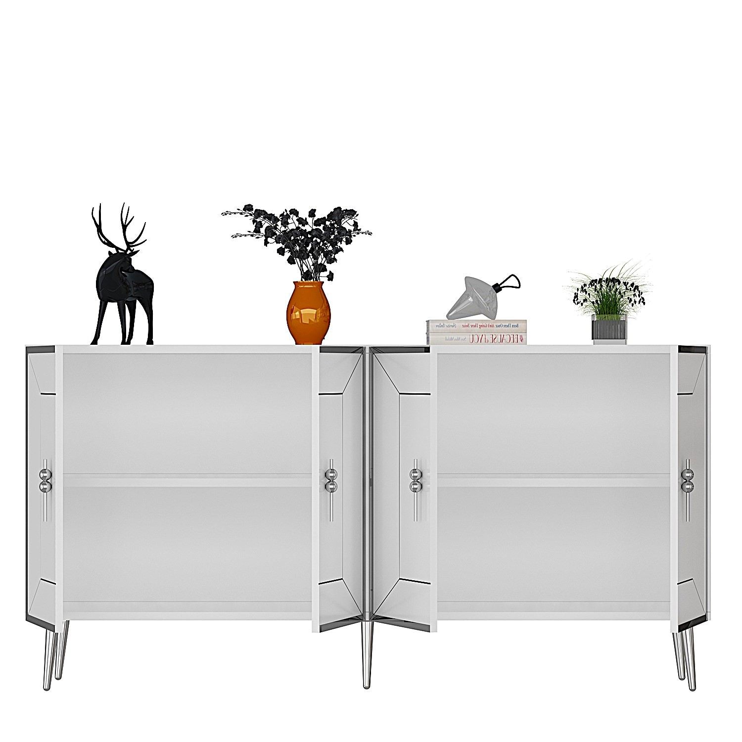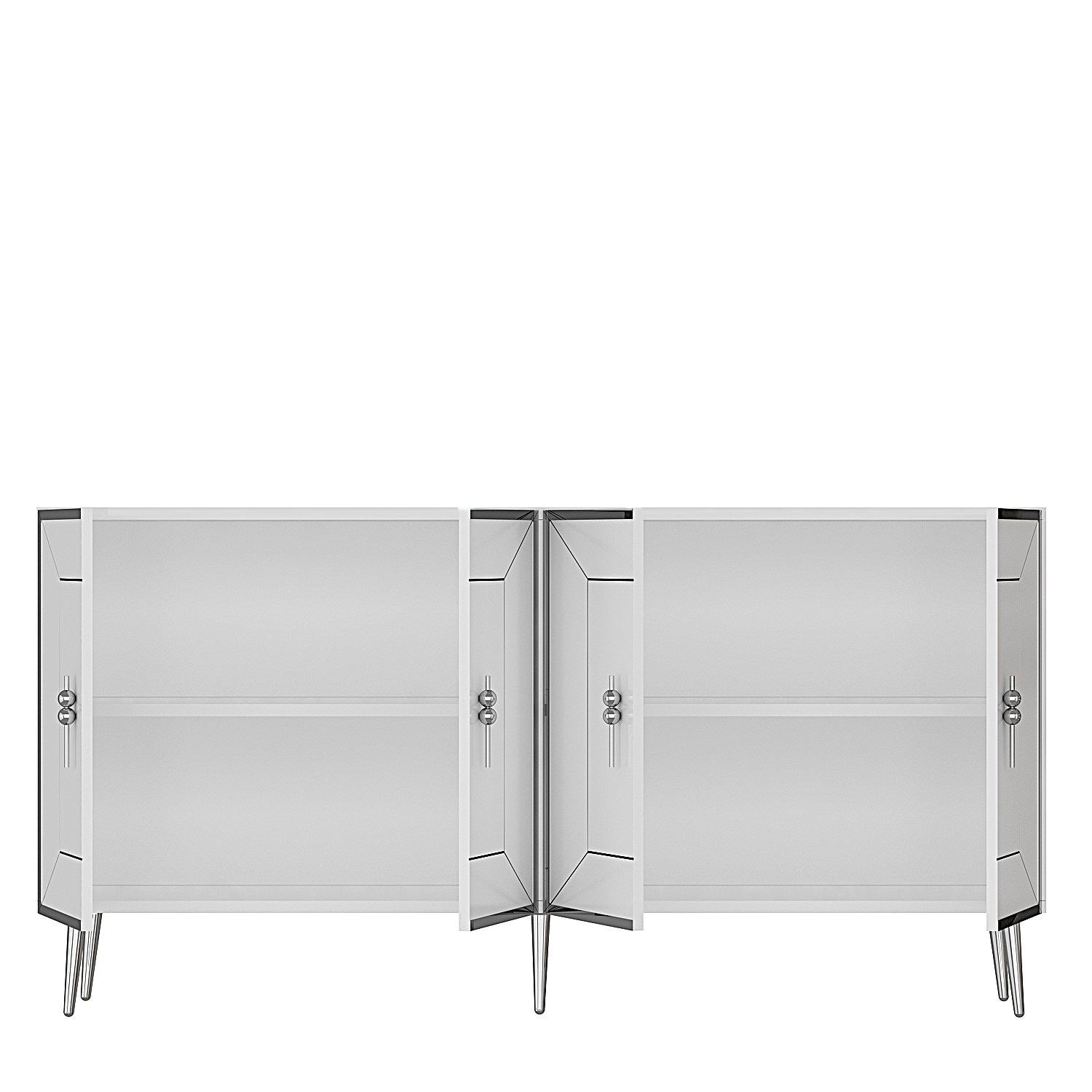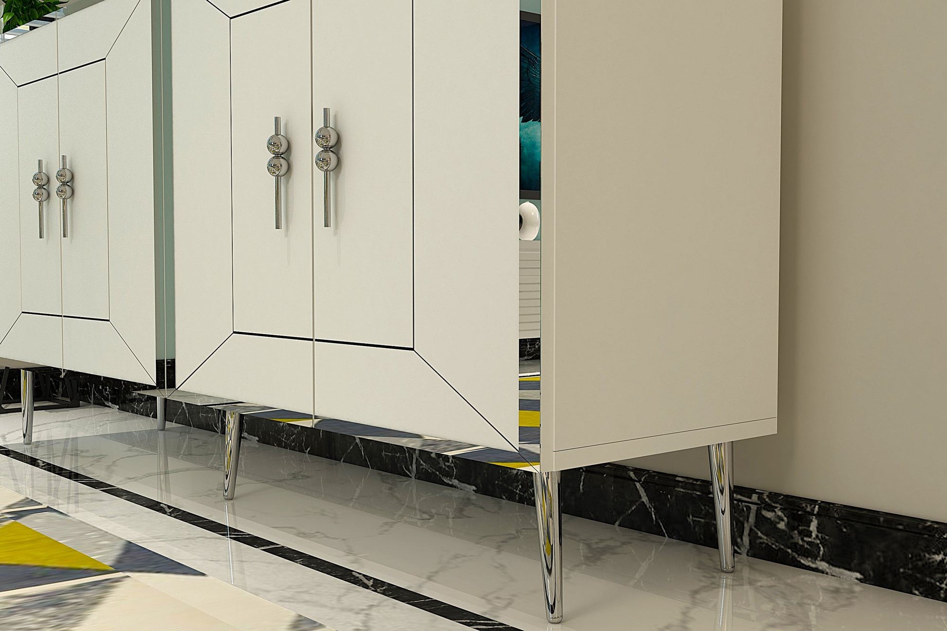 Com as suas linhas simples e o seu design contemporâneo, esta consola irá elevar instantaneamente o aspeto de qualquer divisão. A combinação de cores branca e prateada acrescenta um toque de glamour, tornando-a a adição perfeita à sua sala de estar, corredor ou quarto.