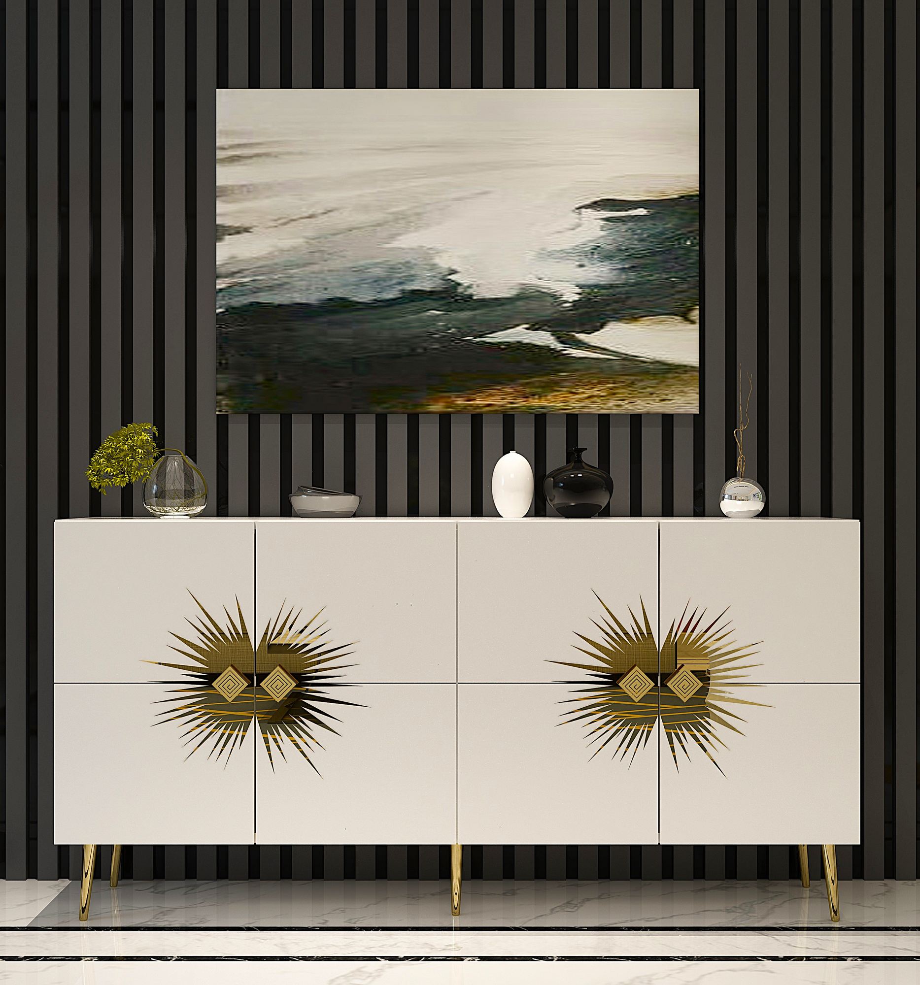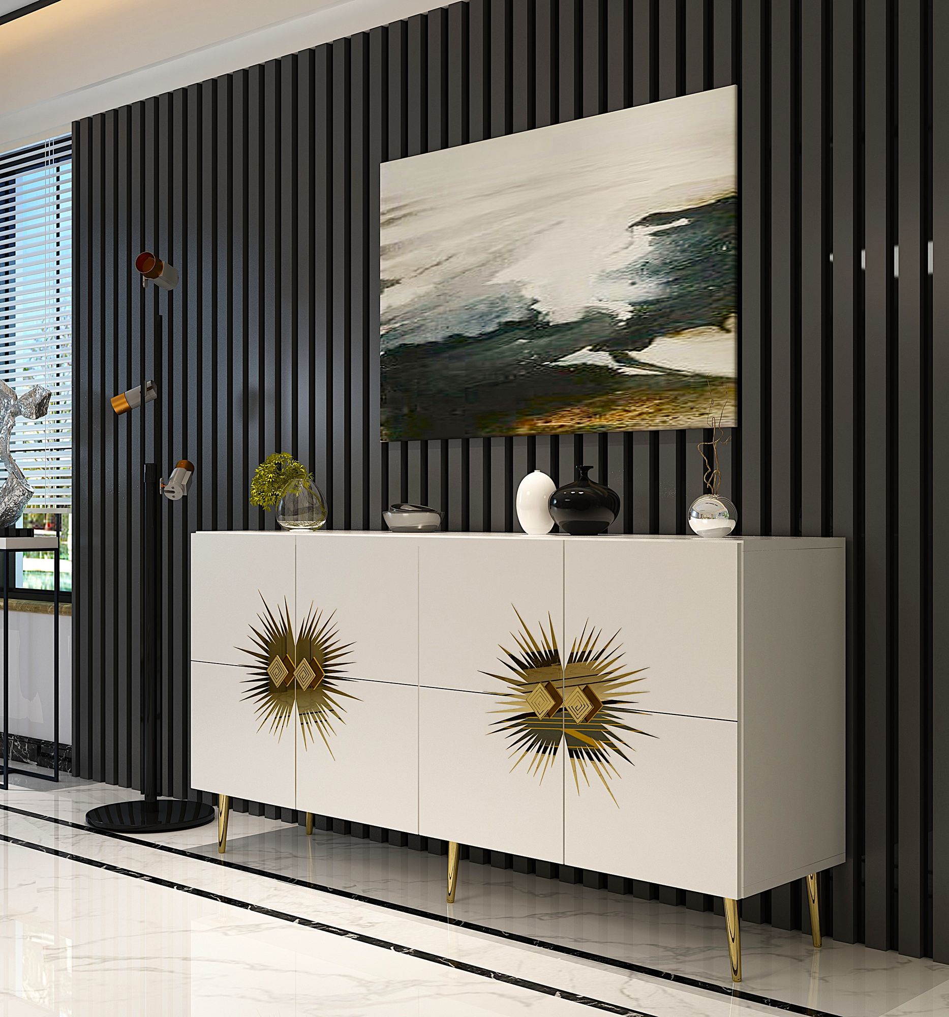 Aparador – 150 cm – Branco e Dourado – Painel de partículas revestido a melamina