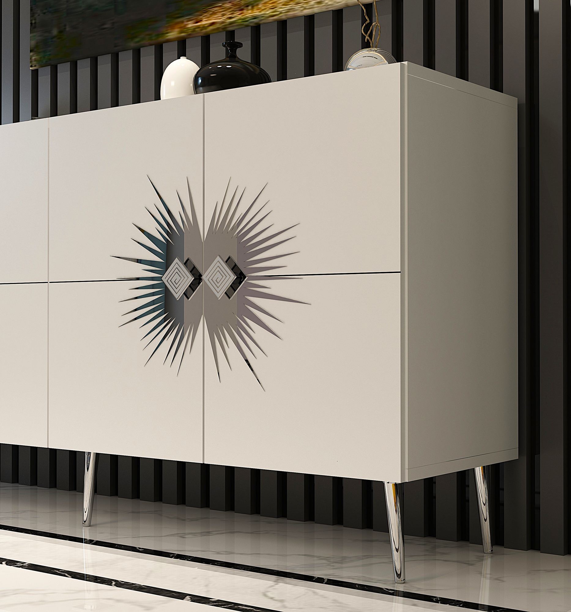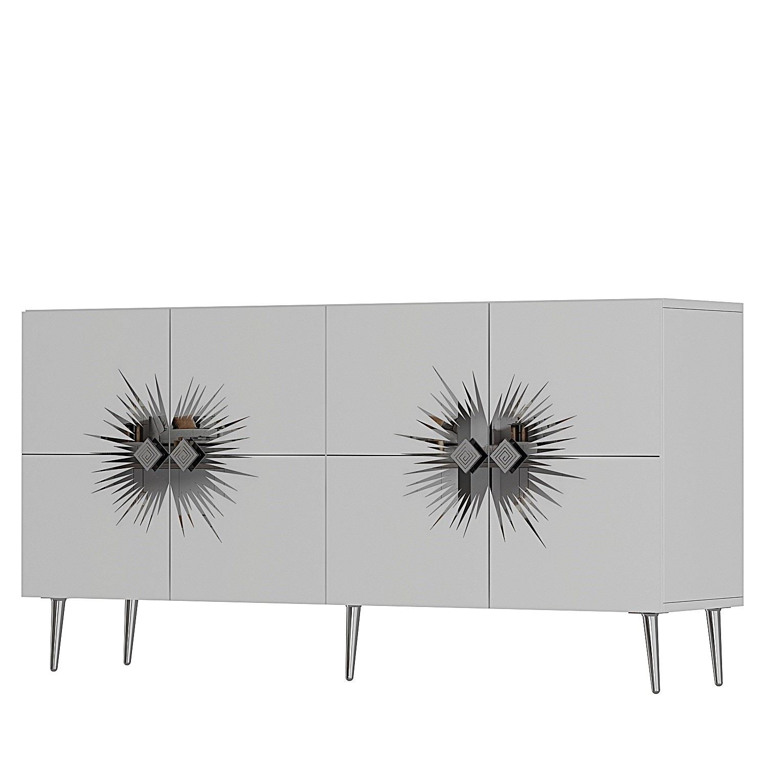 Aparador – 150 cm – Branco e Prata – Painel de partículas revestido a melamina