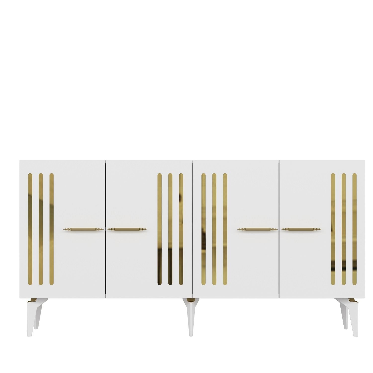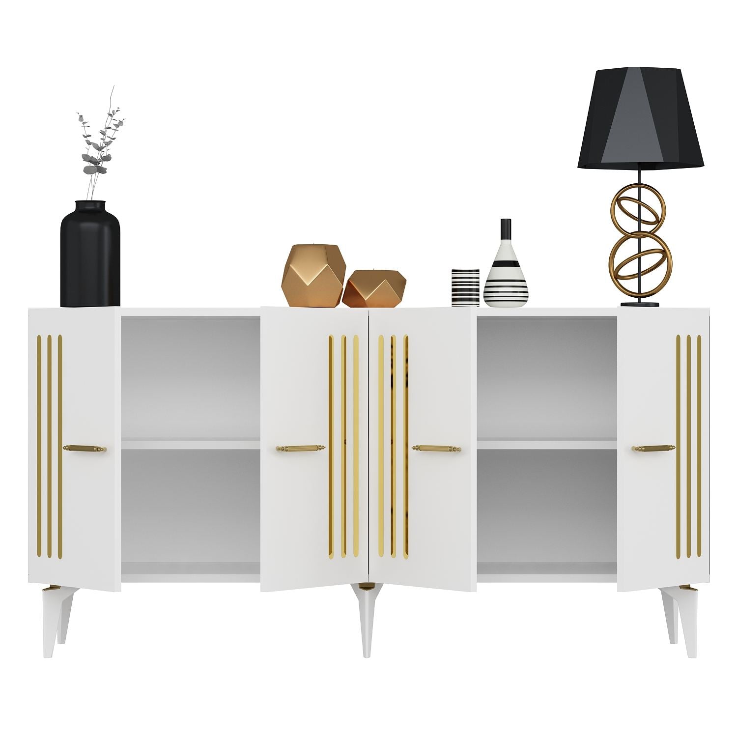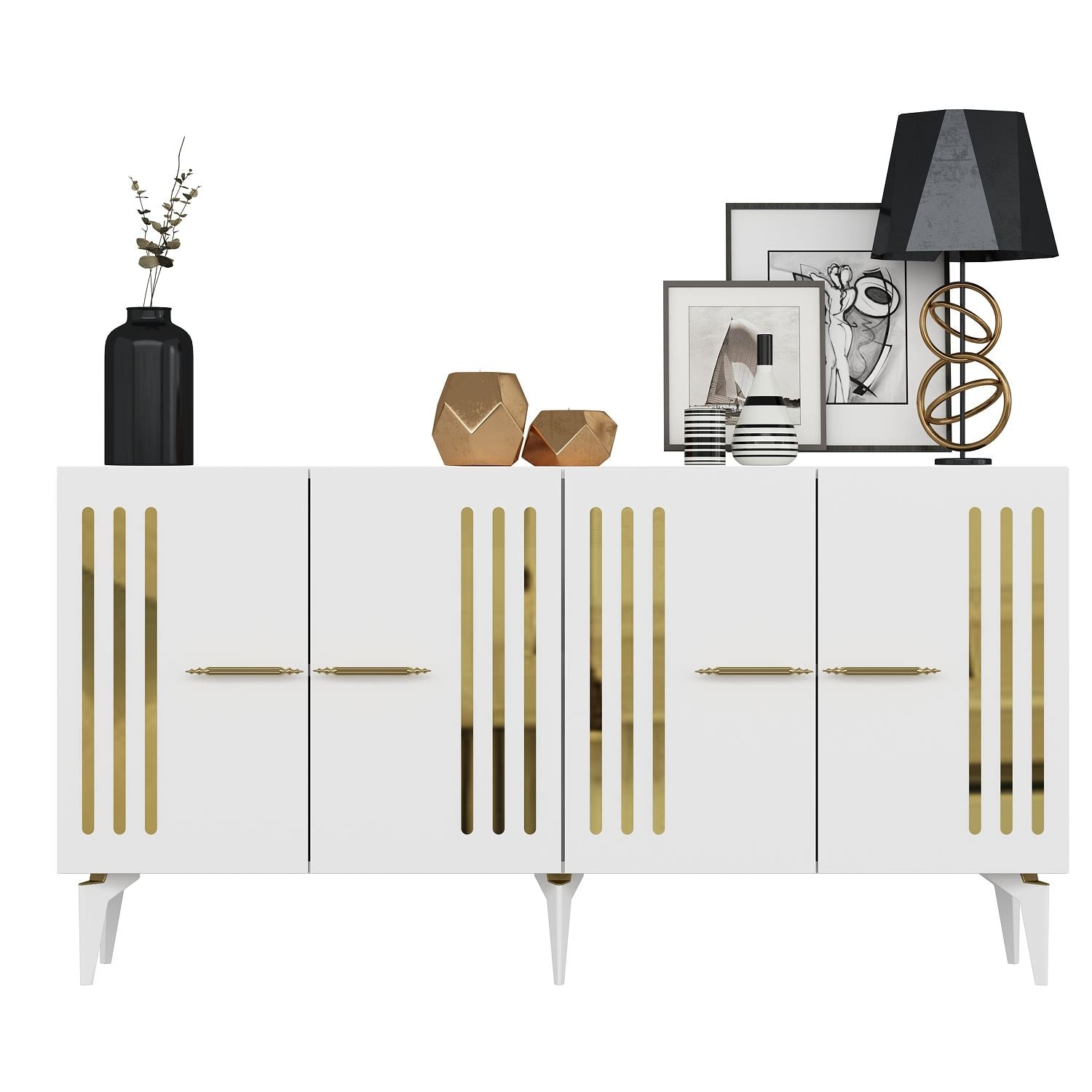 Aparador – 150cm x 79cm x 40cm – Branco e Dourado – Painel de partículas